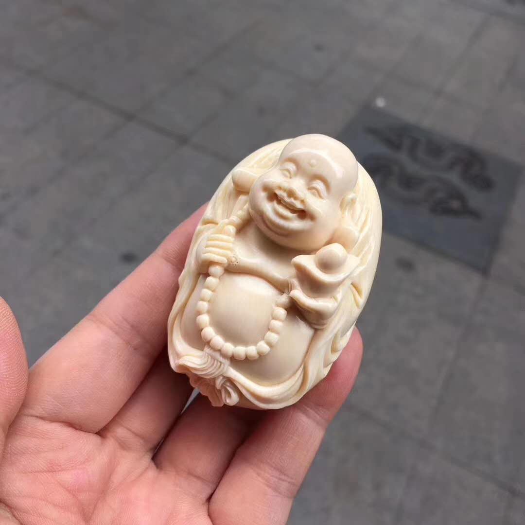 猛犸象牙【元寶彌勒佛】紋路清晰飽滿,牙質白潤無暇 寓意招財進寶 事事如意¥.00 -