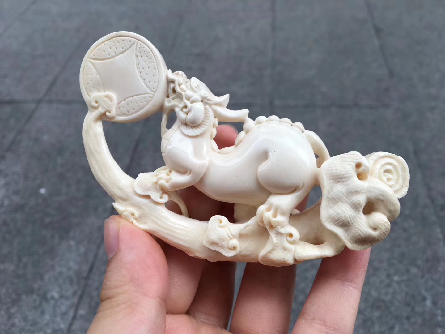 【龍蛋】 精選爆滿紋原色牙料,蟲蟲大師手工精雕,猛犸牙多少錢一克?¥.00 -