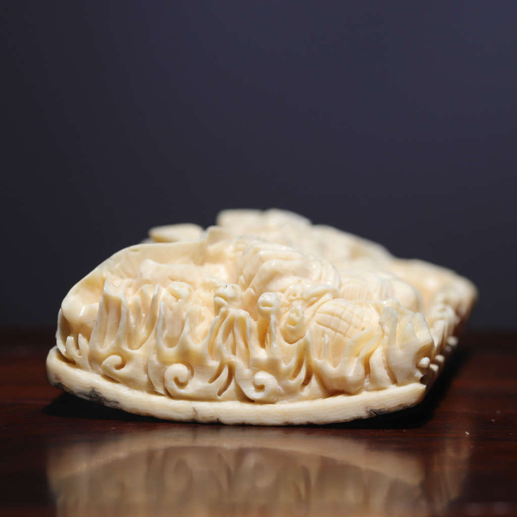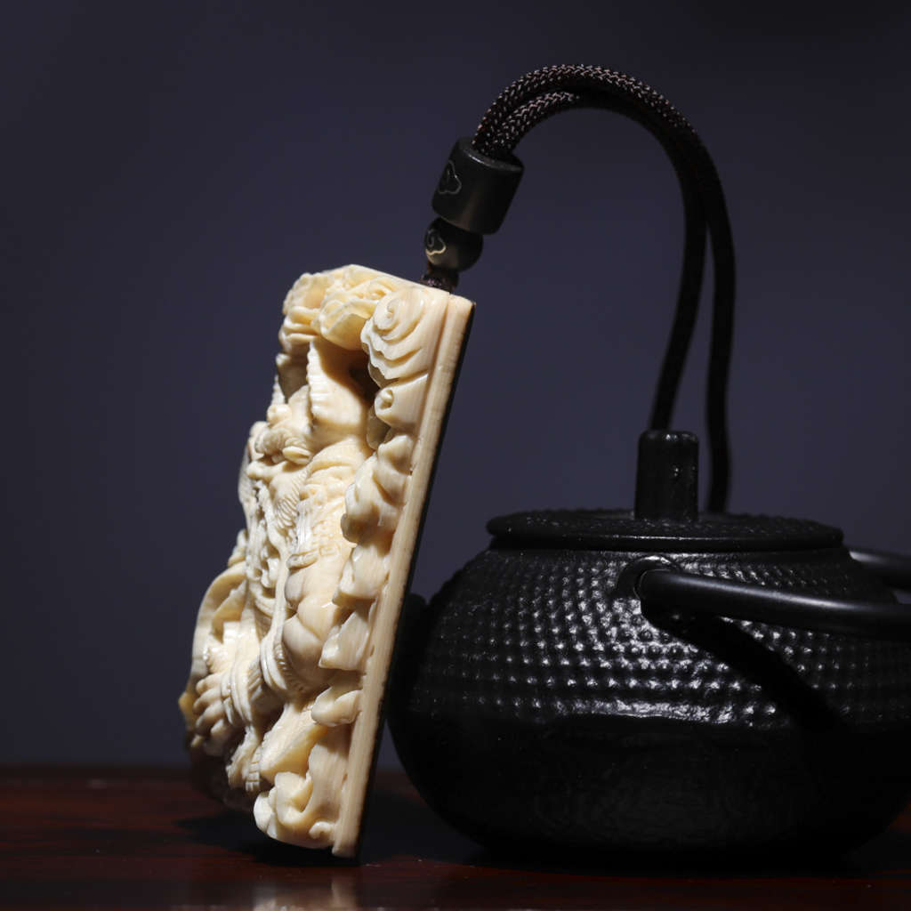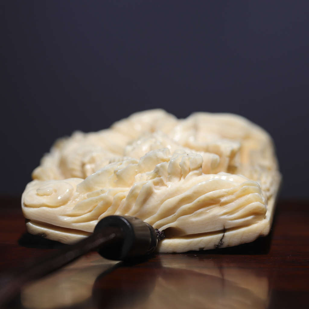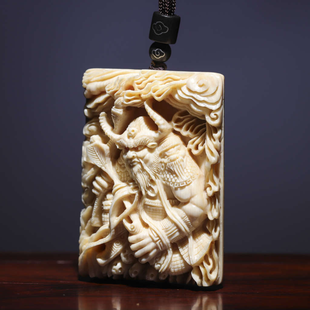 【猛犸牙雕作品】《牛魔王》,資深老師傅創(chuàng)作款!題材新穎,雕工精湛細(xì)膩。牛魔手持火把與芭蕉扇,神態(tài)傳神,意境絕佳!料子紋路飽滿,質(zhì)感潤(rùn)澤,背面金皮滄桑古樸,韻味十足!