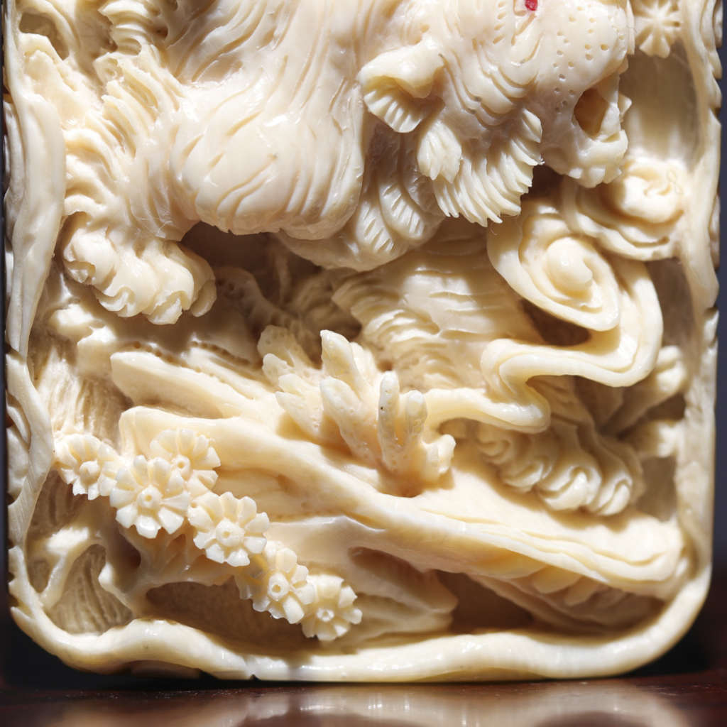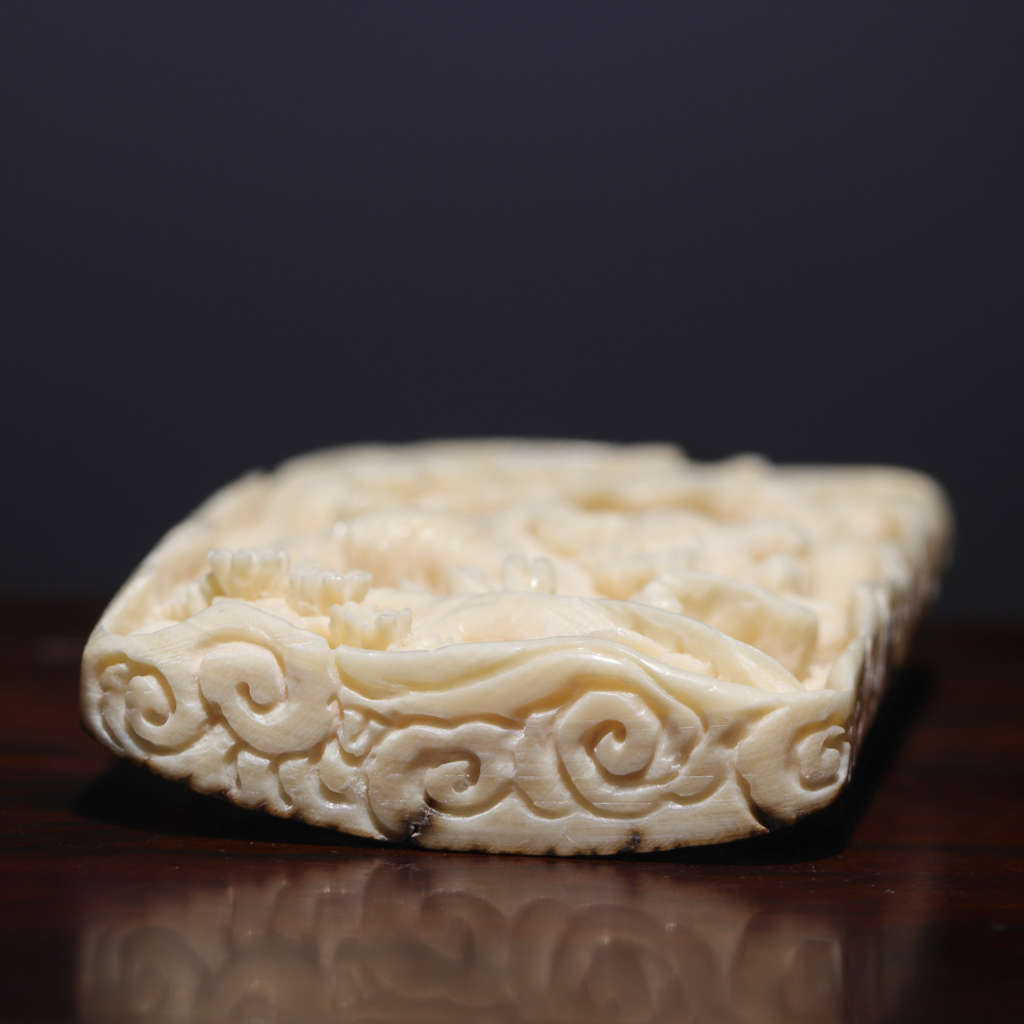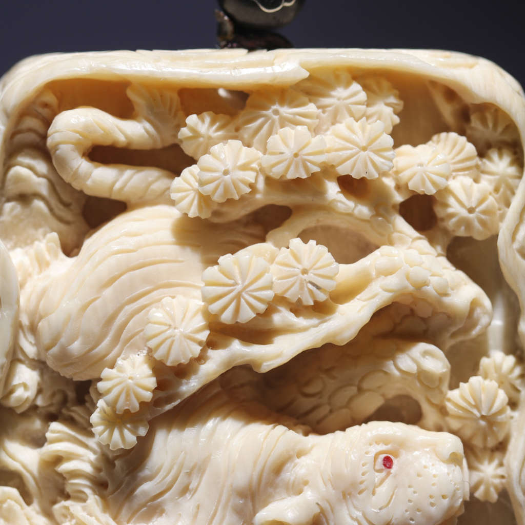 【猛犸牙雕作品】《虎牌》,猛虎出門覓食,威風凜凜,霸氣十足。細節刻畫十分精細,意境十足,突出虎威,鎮邪驅煞。老師傅純手工創作款,精選猛犸帶皮冰料!紋路清晰,料子潤澤。