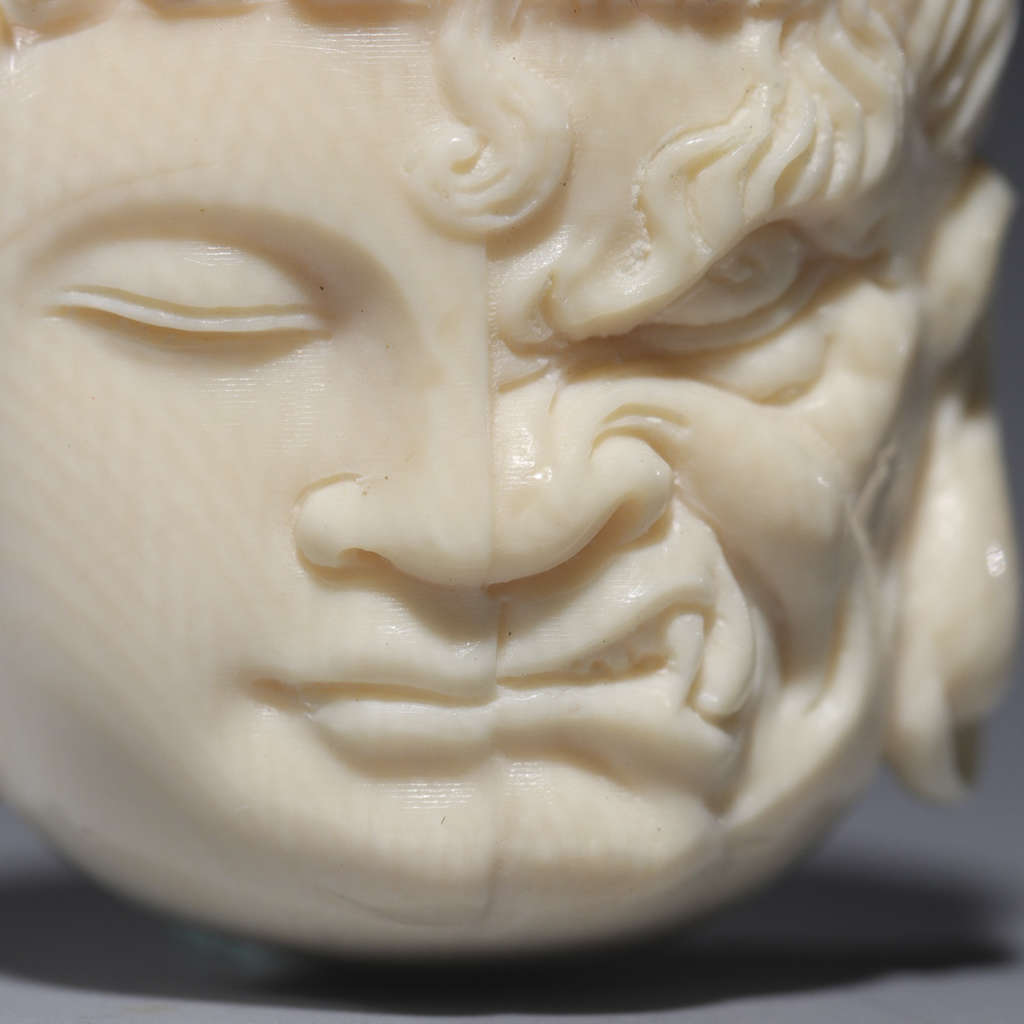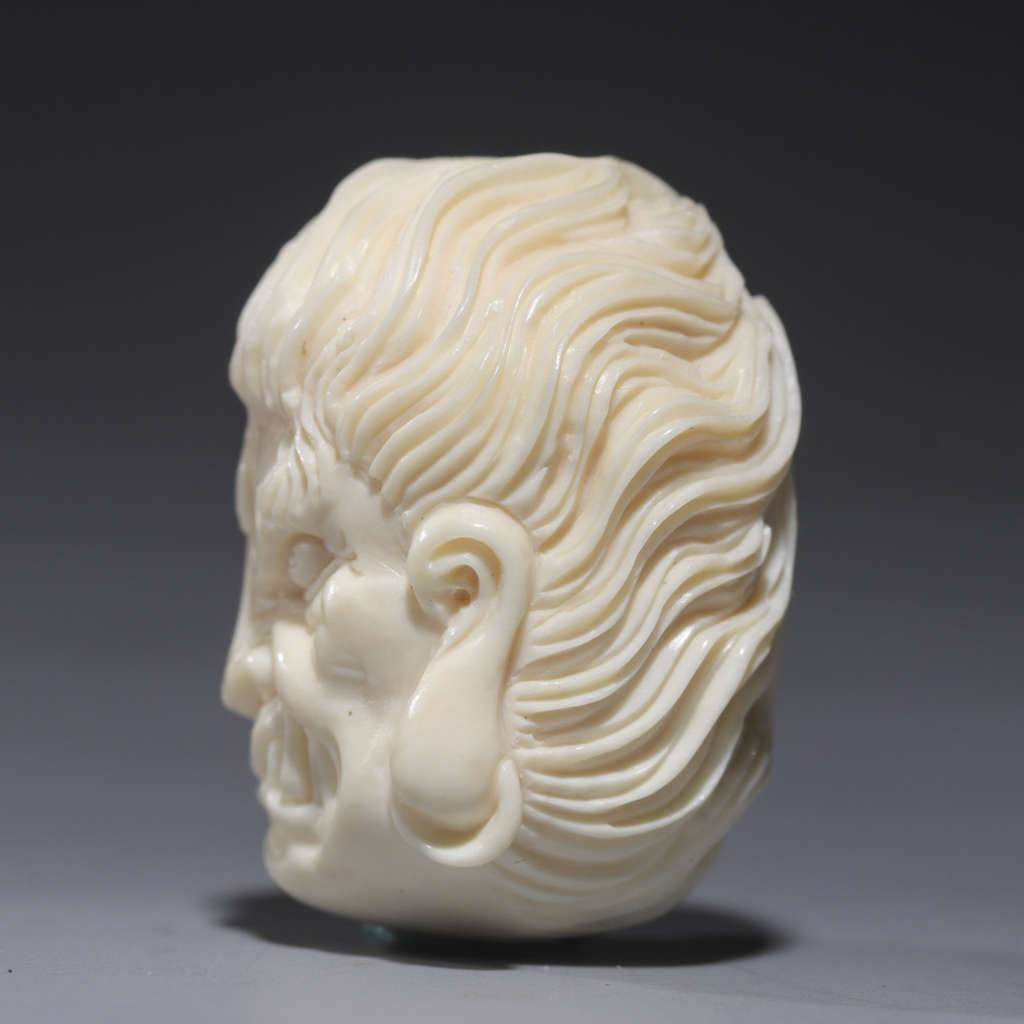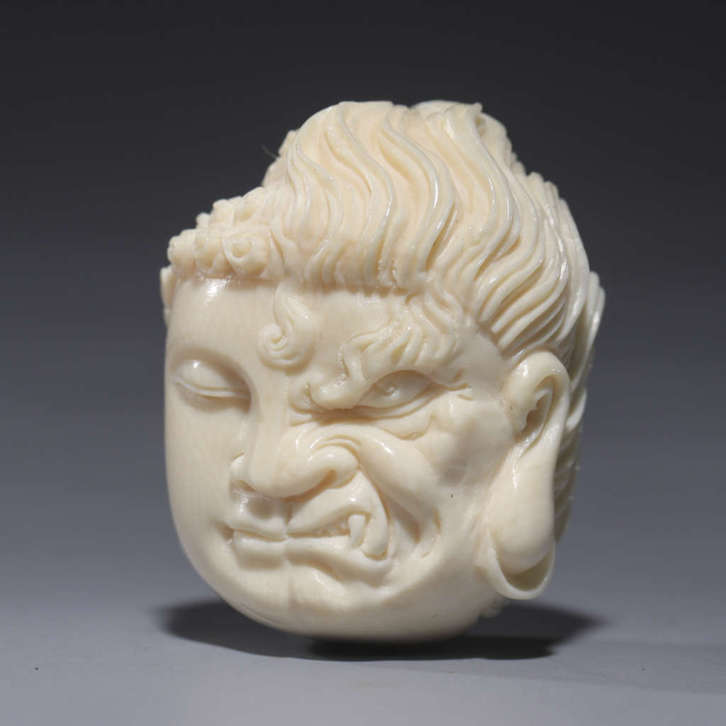 猛犸牙雕《一念之間》,精選白冰料!牙質細膩水潤,二十年資深老師傅親手操刀,細節完美!一念而從善,一念而從惡,一念而成佛,一念而成魔,遇事堅守底線,不做令自己后悔的事情! 尺寸:26×21×19mm, 克重:9.1克