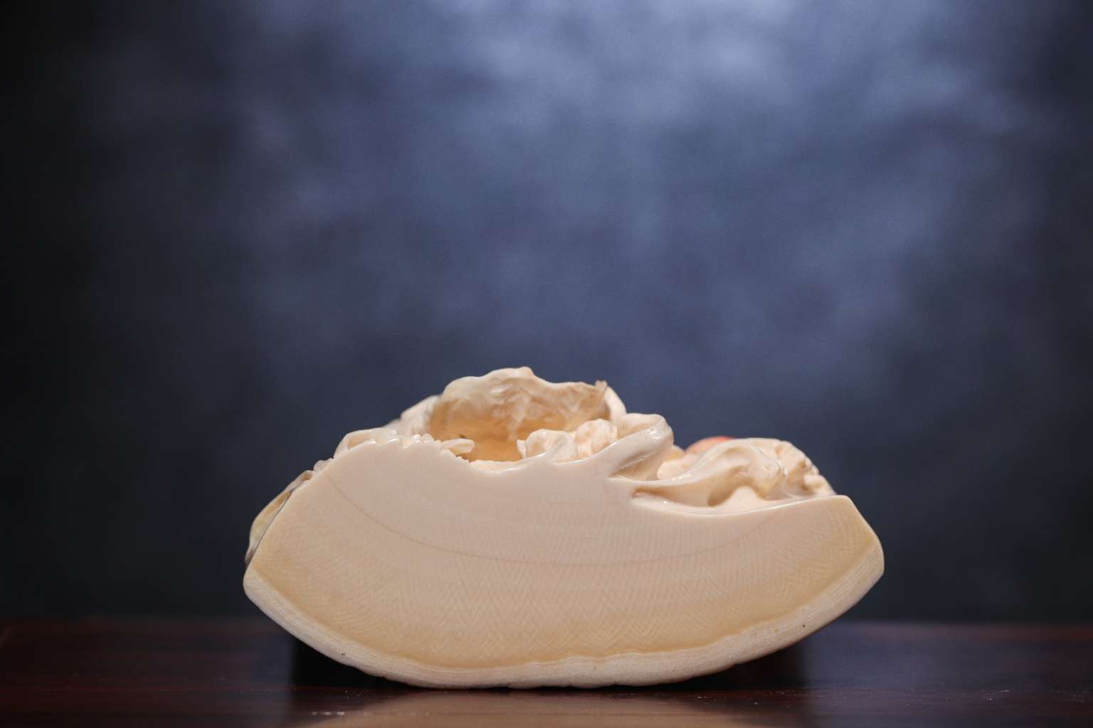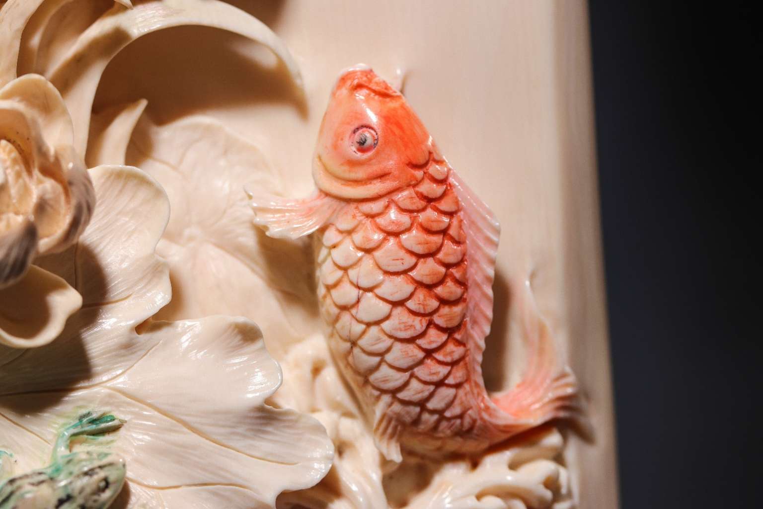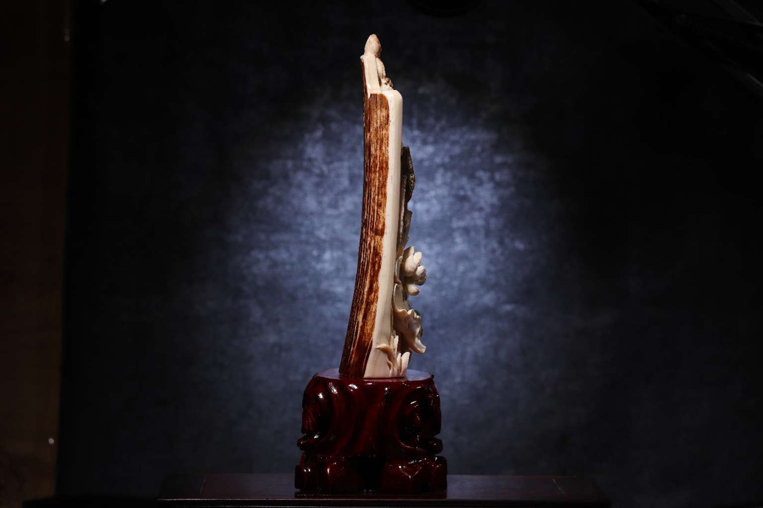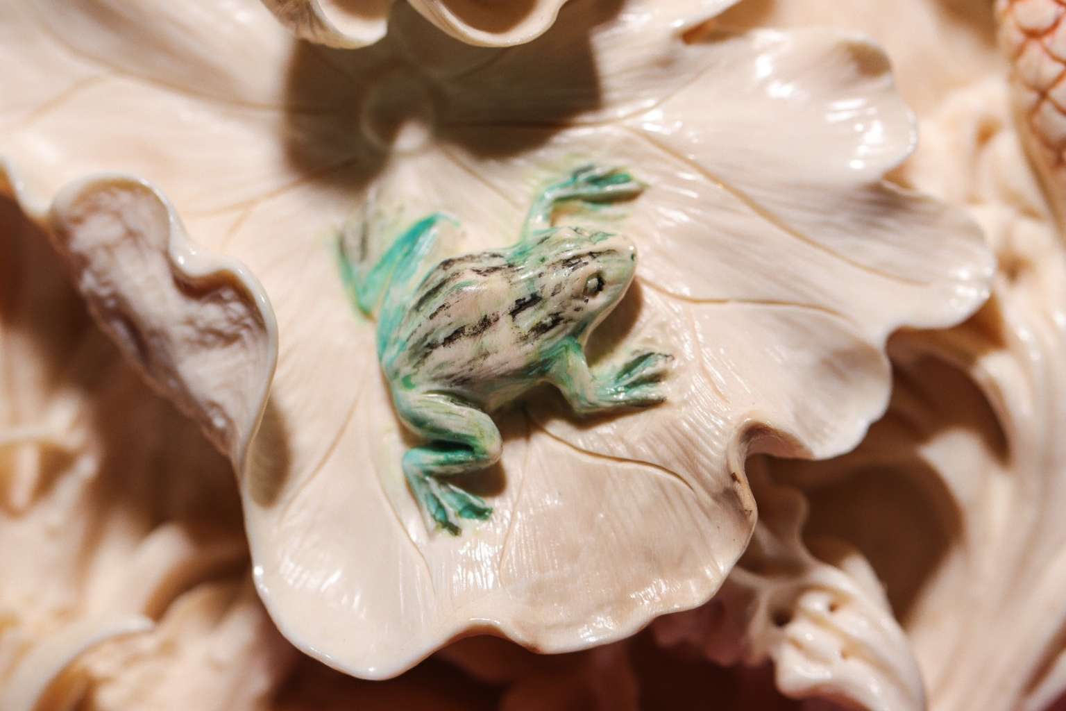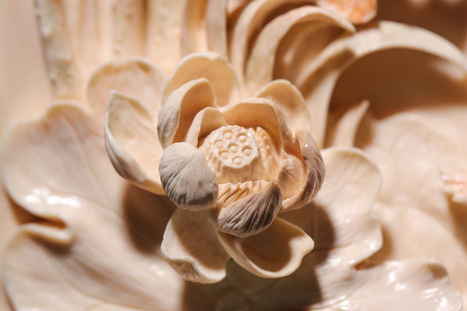 【猛犸牙雕】《荷花鯉魚(yú)擺件》荷花象征著純潔清白 鯉魚(yú)象征著富貴有余 青蛙象征著多子多福