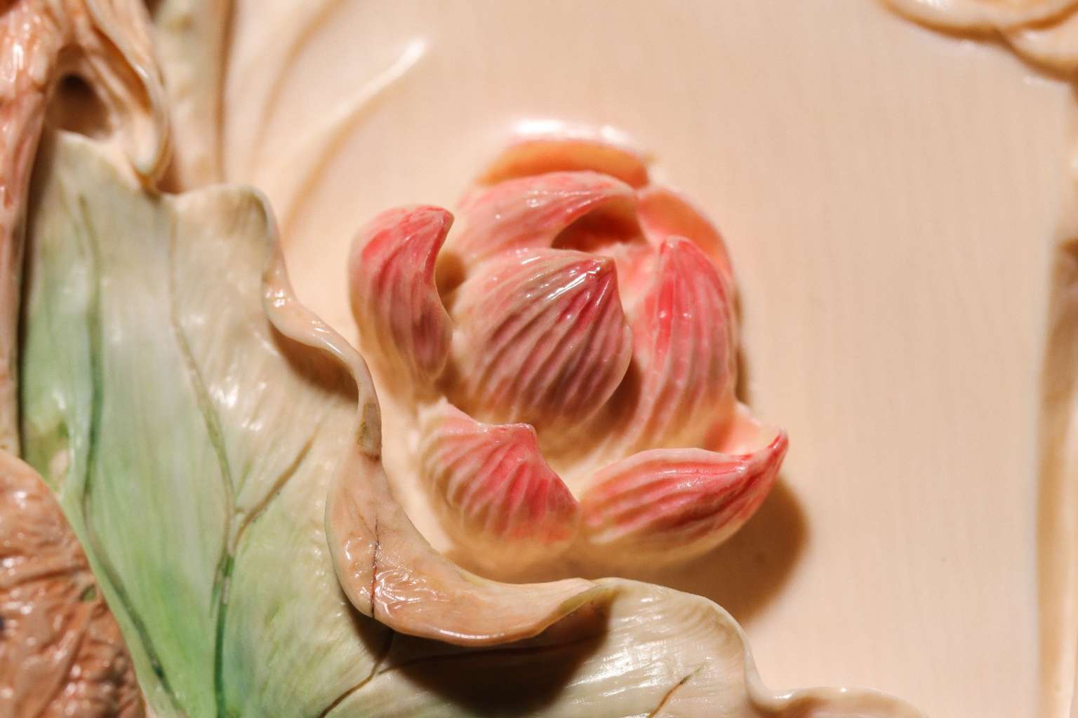 優(yōu)質(zhì)擺件!【猛犸牙雕】《荷花鯉魚(yú)擺件》荷花象征著純潔、清白。鯉魚(yú)象征著富貴,有余。青蛙象征著多子多福。 三者結(jié)合寓意美好、吉祥、富貴。這是一件自藏送禮都非常合適的擺件!純手工雕刻、古法上色、細(xì)節(jié)靈動(dòng)、題材喜人!