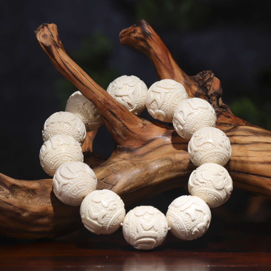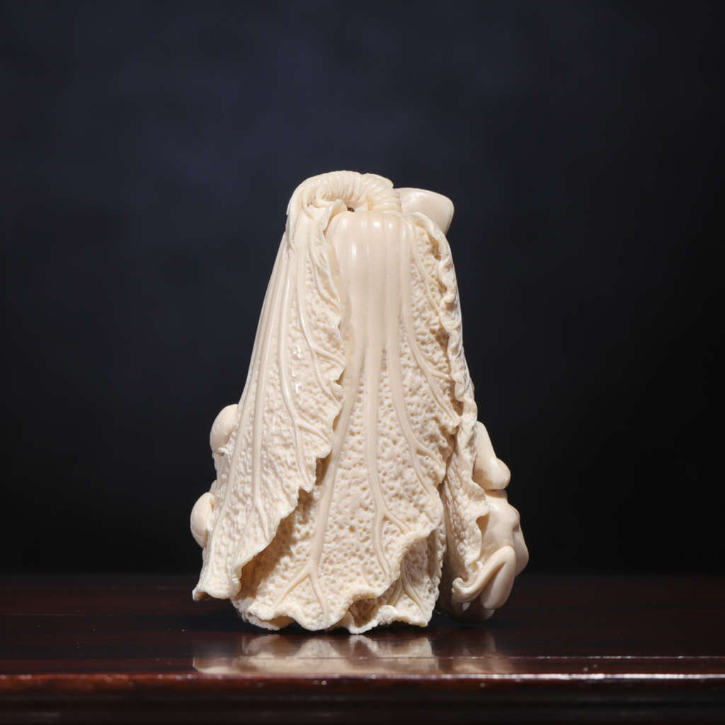 【猛犸牙雕作品】《百財》題材寓意極佳 白片徐徐舒卷 菜根粗須纏繞