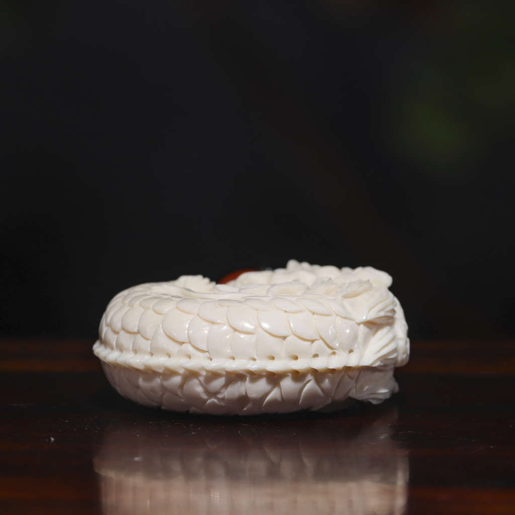 【猛犸牙雕作品】《魚化龍》,精選上乘冰料!紋路飽滿,質感潤澤!“龍頭魚身”是鯉魚誤吞龍珠而羽化成龍的典故,寓意一步登天,輝煌騰達!