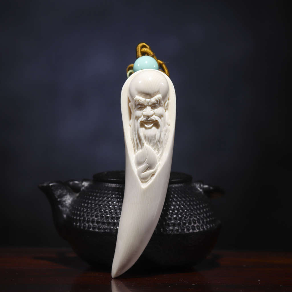 【猛犸牙雕作品】《壽星牙尖》精選白冰料,色澤水潤,由資深老手藝人操刀手雕,整體雕工流暢細(xì)膩。人物刻畫生動形象,壽星前額飽滿,笑臉盈盈,手持壽桃,細(xì)節(jié)完美!寓意福如東海,壽比南山!絕佳的送禮題材!