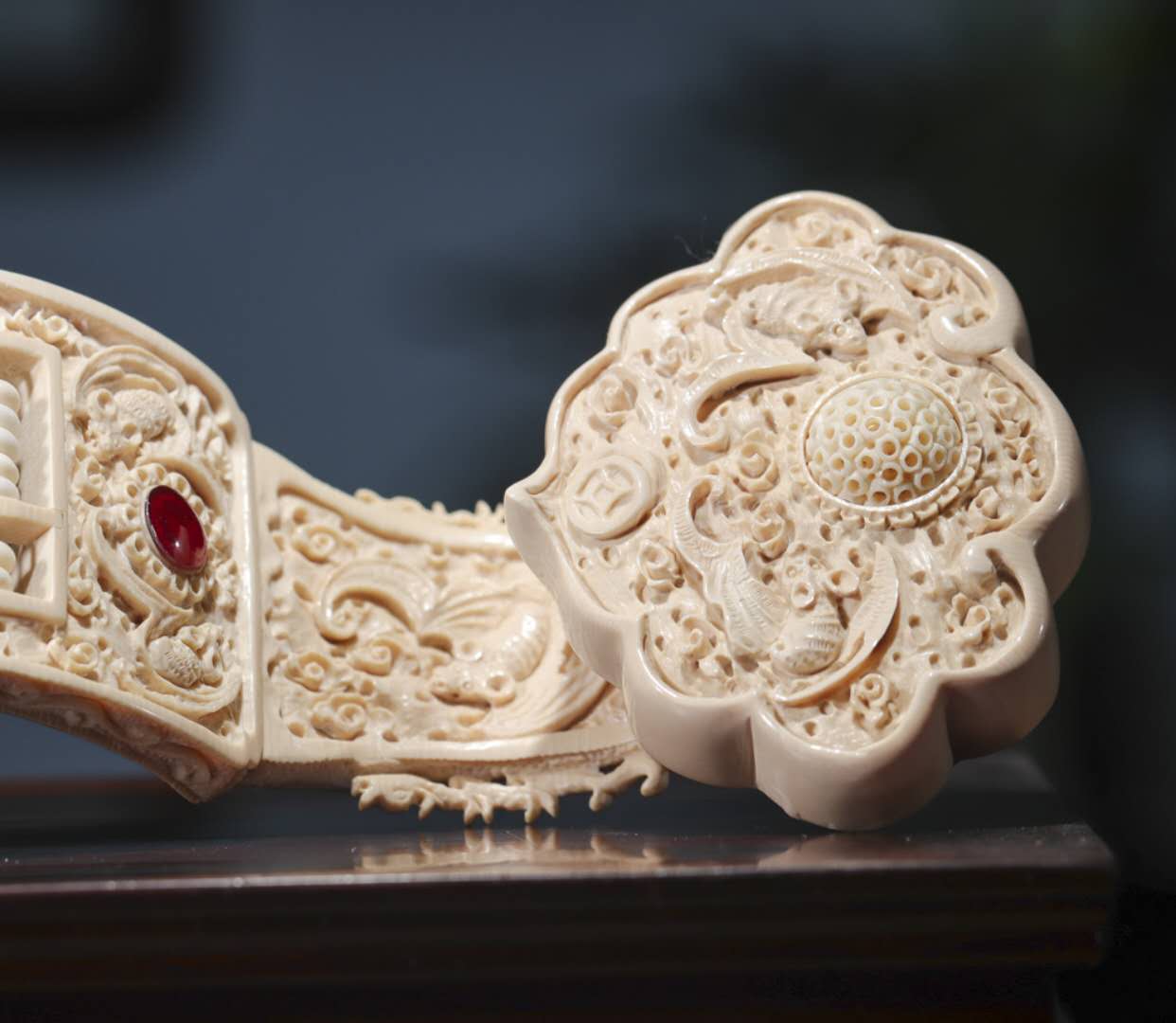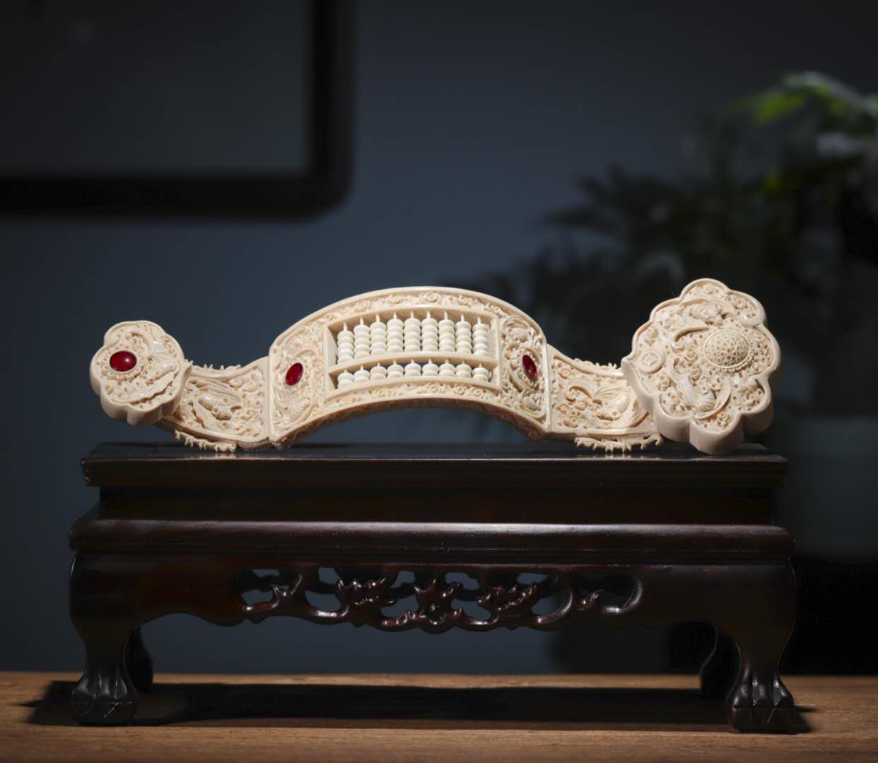 【猛犸牙雕】《如意算盤》擺放在辦公室 家中都非常合適 寓意日進斗金 事事順心 萬事如意