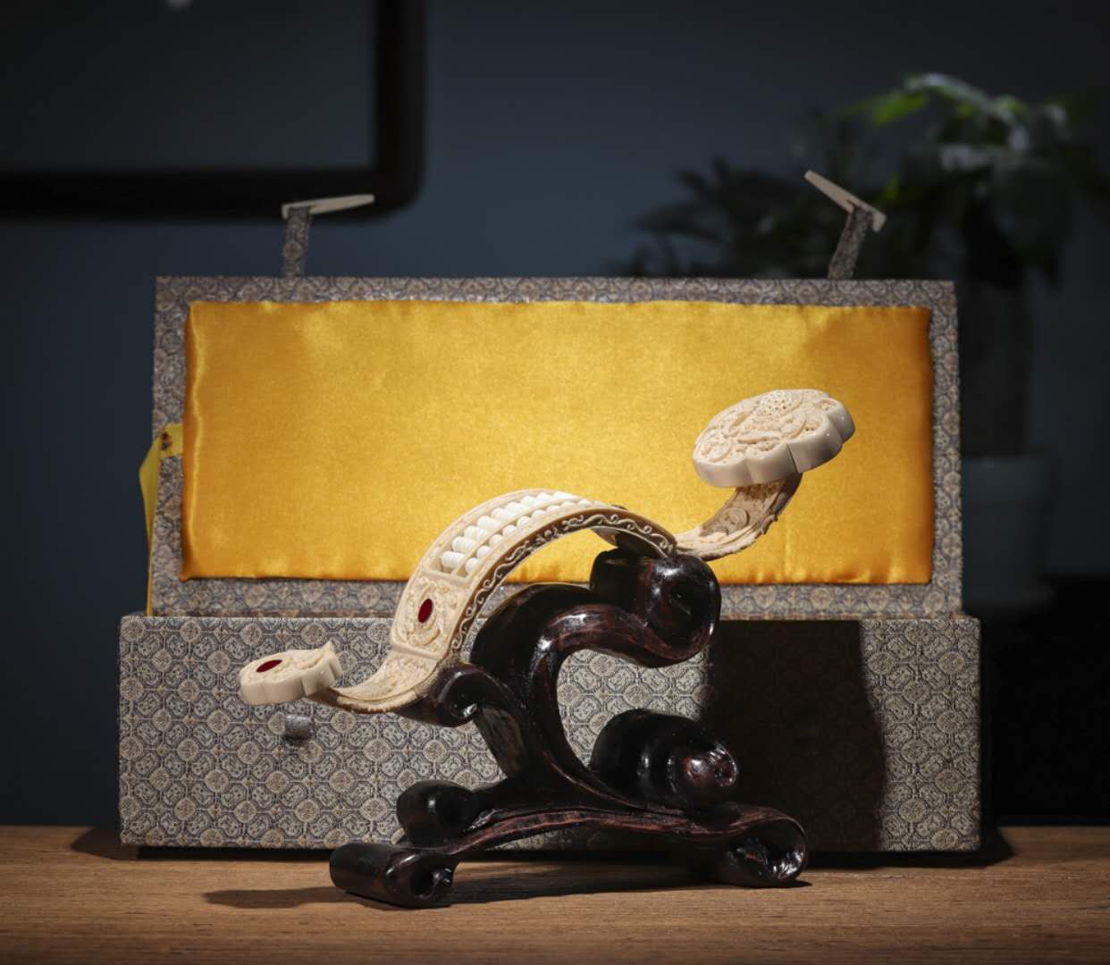 優質擺件!【猛犸牙雕】《如意算盤》主體采用上乘猛犸冰料精雕而成,造型大方,中段嵌有小算盤,十分精致。如意是我國傳統吉祥物,形如靈芝,貌似祥云,象征吉祥如意,福壽無疆。猛犸象牙本身具有聚財氣之說,所以擺放在辦公室、家中都非常合適,寓意日進斗金、事事順心、萬事如意!
