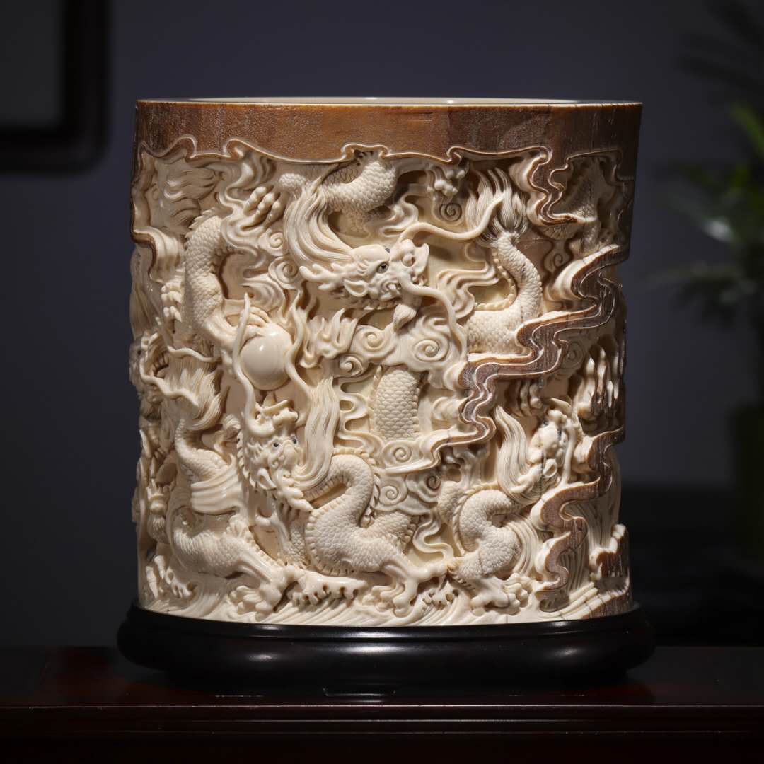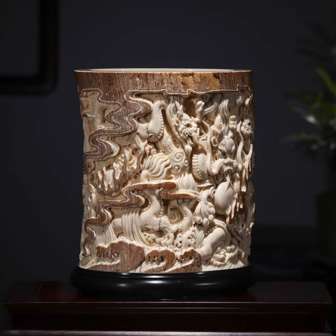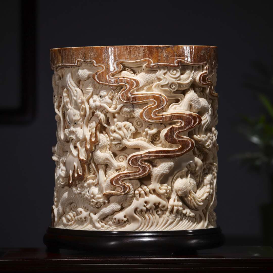 《九龍筆筒》中華文化中龍象征著權(quán)勢與富貴 非常適合擺放在辦公桌上鑒賞