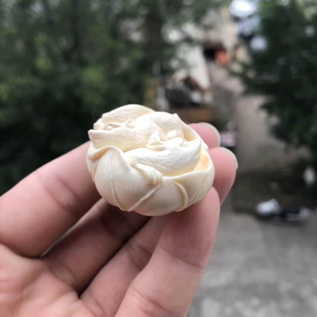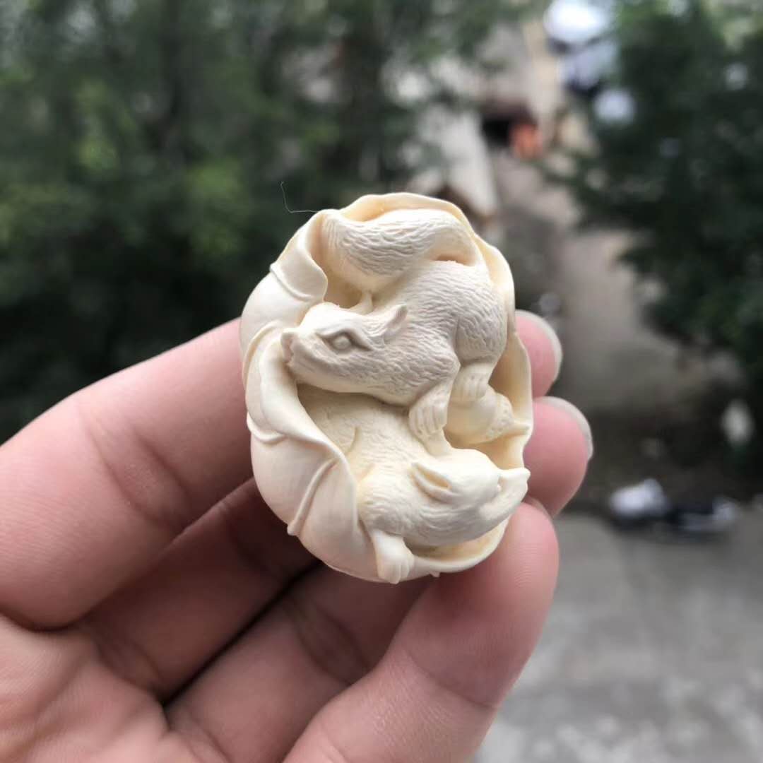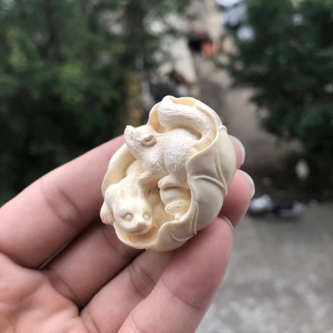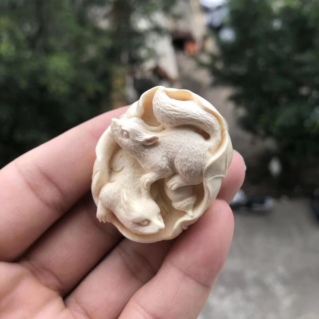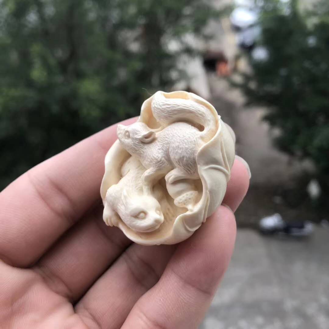 猛犸牙雕純手工小精品【福鼠運(yùn)財(cái)】雕件 立體鏤空 極具設(shè)計(jì)感 招財(cái)納福