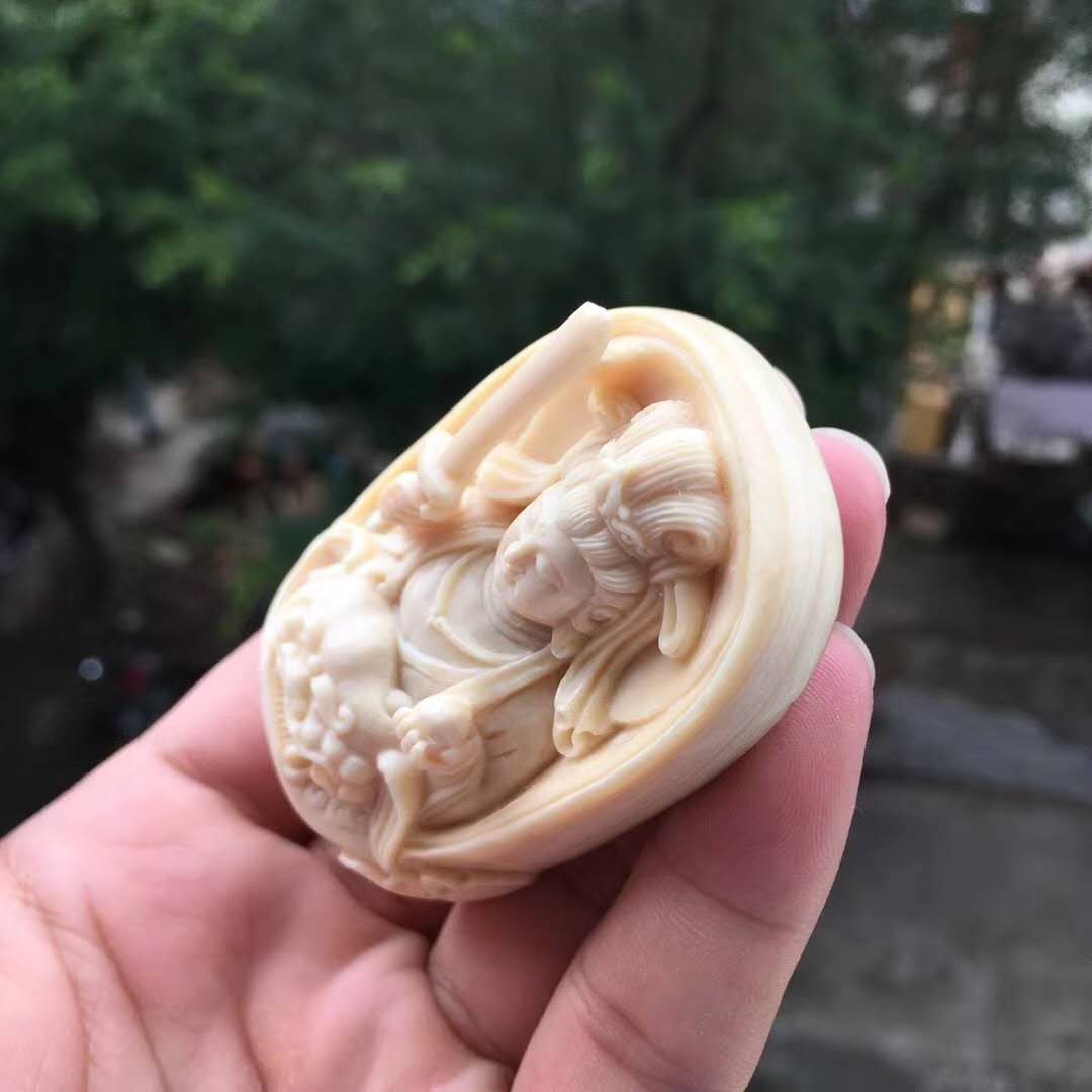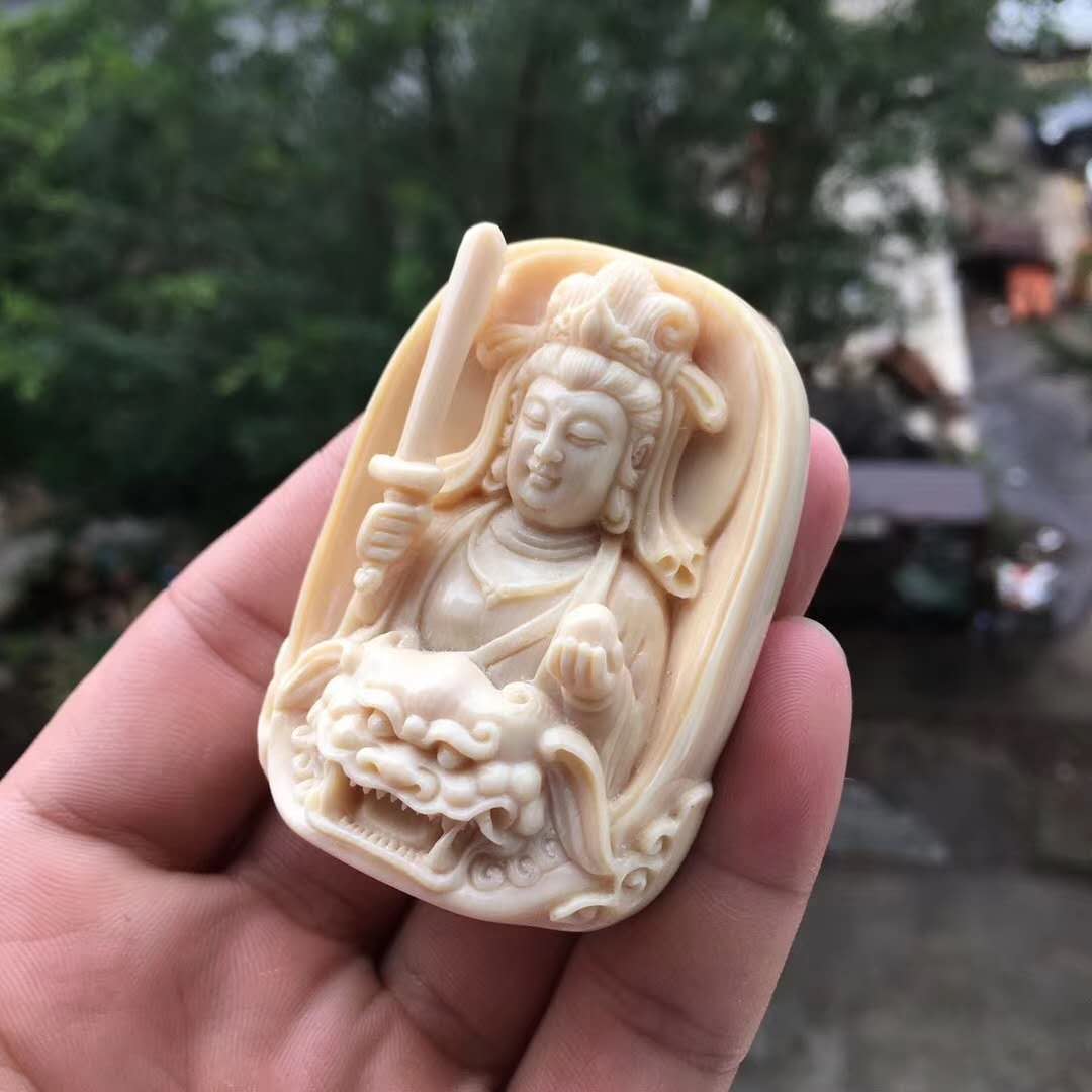 【文殊菩薩】周明大師純手工精雕力作,精選頂級猛犸冰料,保留天然精美紅皮,潤澤細(xì)膩,絕美標(biāo)桿級開臉工藝,端莊大氣,全新設(shè)計(jì)款,非常漂亮,奪人眼球,入眼入心!尺寸56*44*24mm,重57.8g。