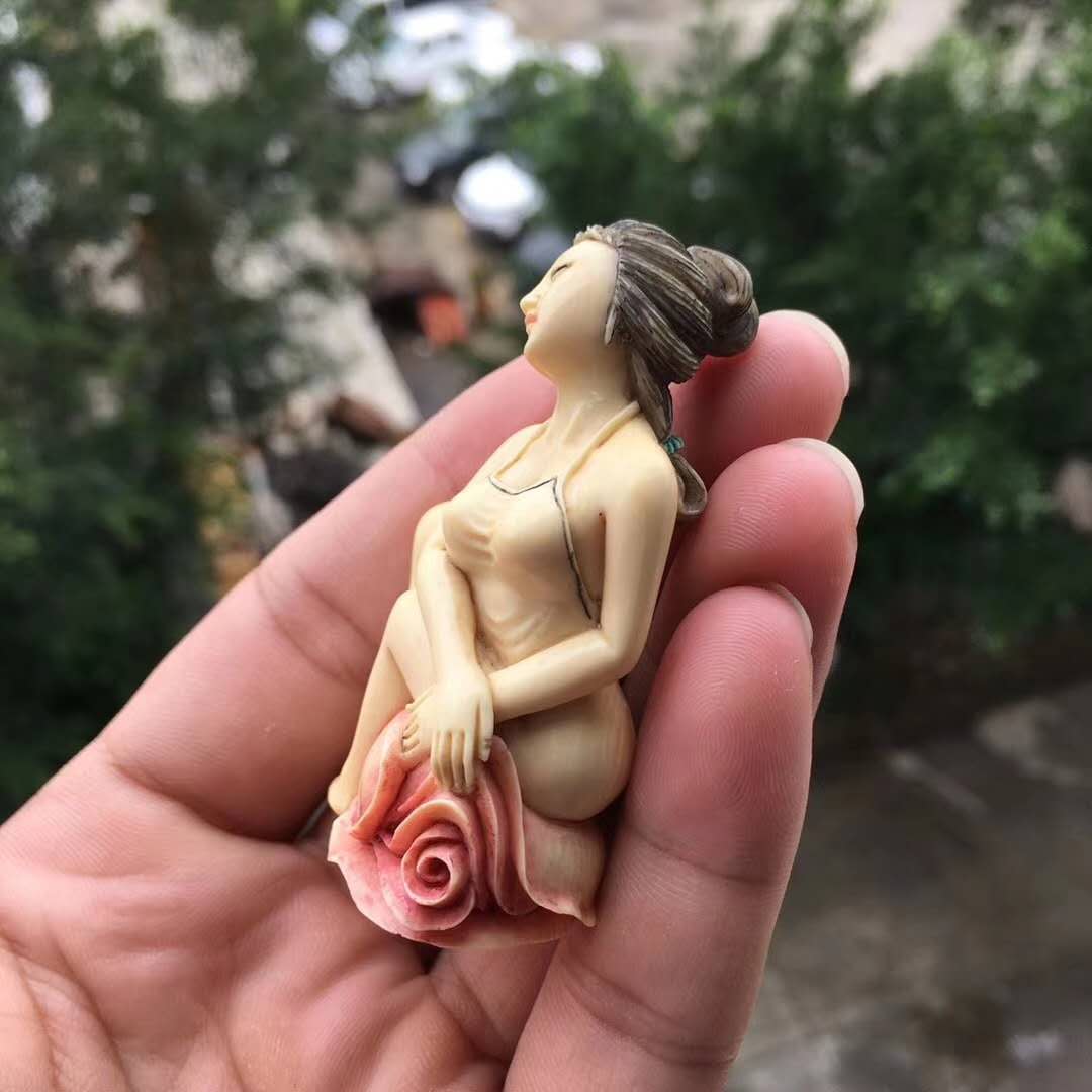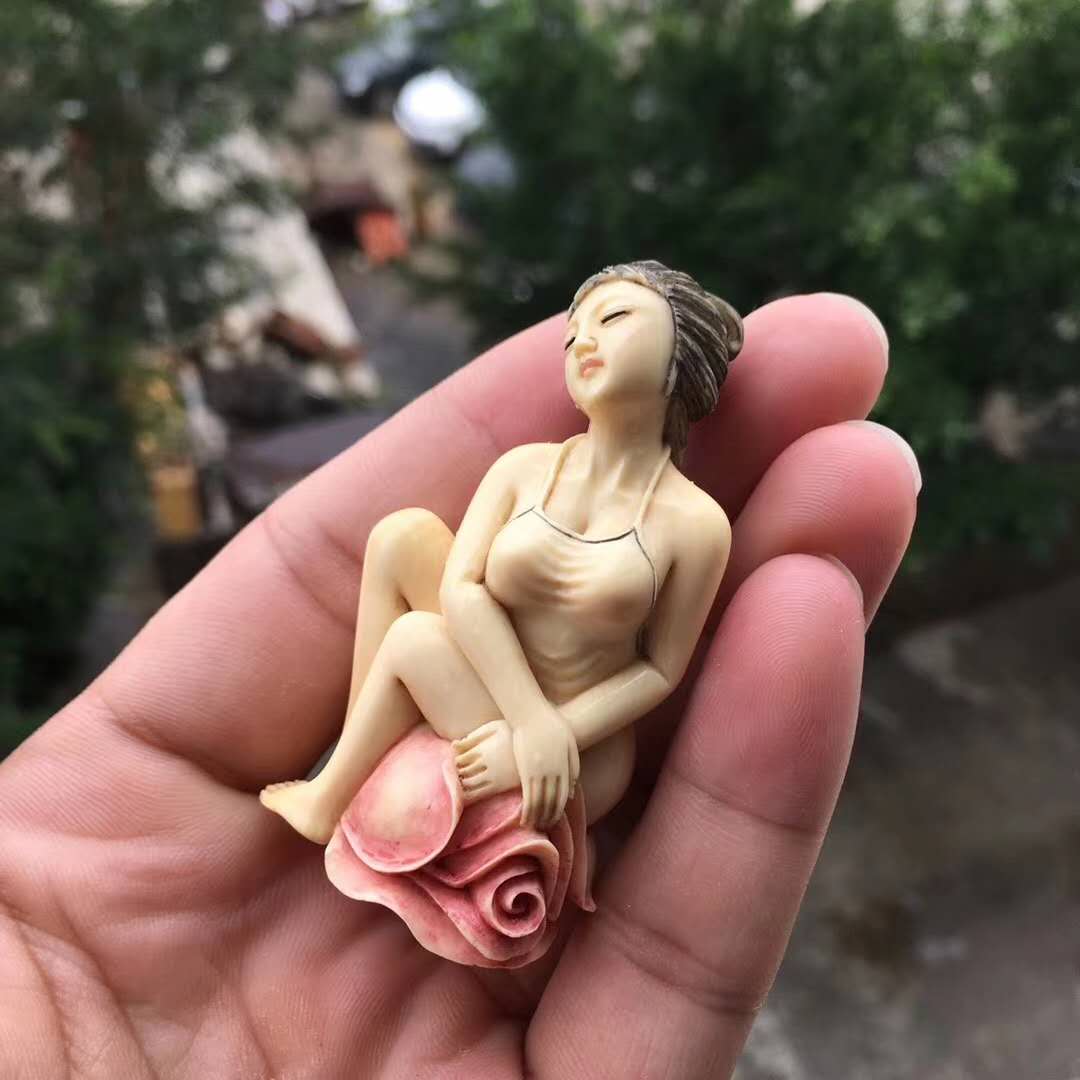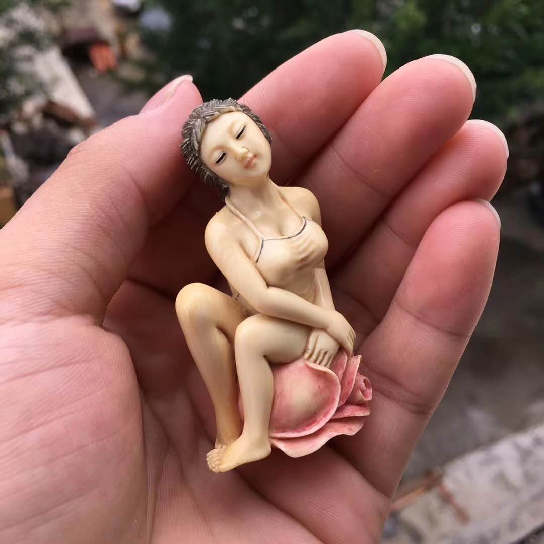 【出水芙蓉】精致小擺·手把件均可。港工回流彩繪,老一輩牙雕大師經典力作,精選水潤猛犸冰料,紋路細膩飽滿,整料一體雕刻,刻制立體生動,面容姣美,姿態優美自然舒展,收藏賞擺,把玩極品尺寸62*33*25mm克重30.6g