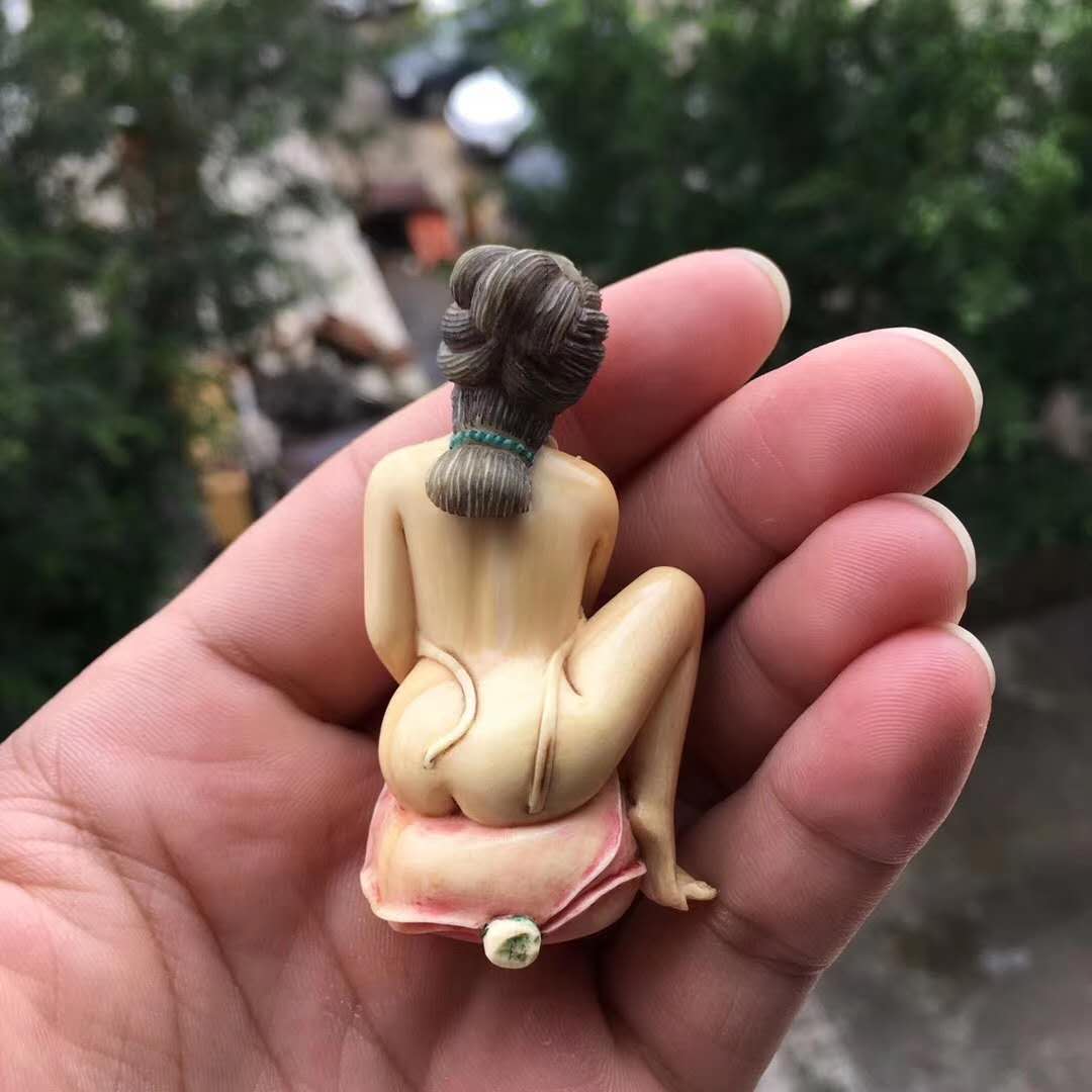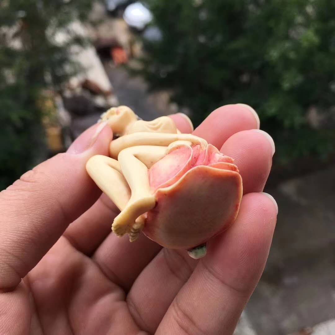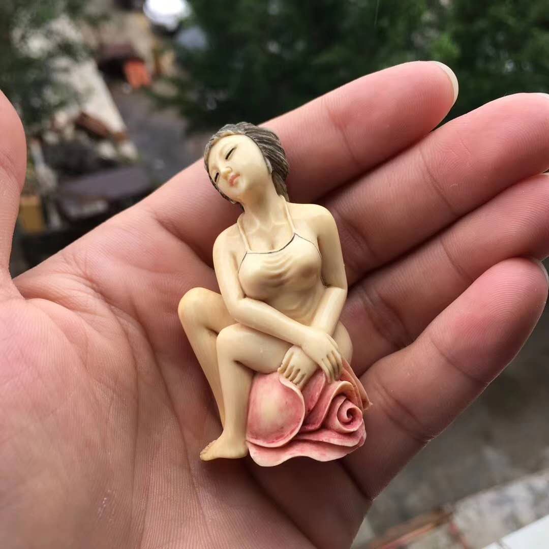 【出水芙蓉】精致小擺·手把件均可。港工回流彩繪,老一輩牙雕大師經典力作,精選水潤猛犸冰料,紋路細膩飽滿,整料一體雕刻,刻制立體生動,面容姣美,姿態優美自然舒展,收藏賞擺,把玩極品尺寸62*33*25mm克重30.6g