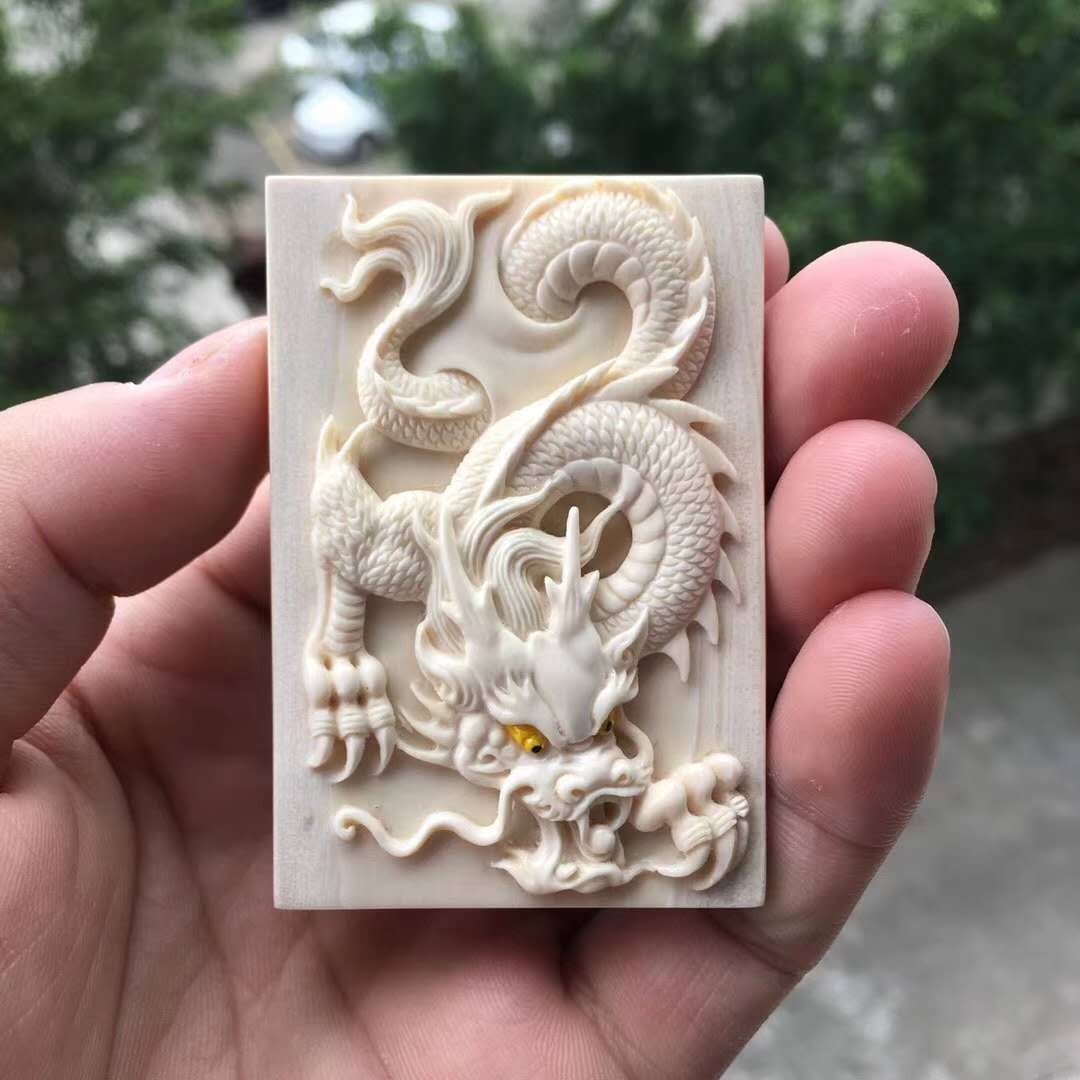 【祥龍獻瑞】勇創作品,純手工立體精雕,工藝精湛,難得佳品,雕刻簡介大氣,原色極品藍皮,大師落款,尺寸67*45*15mm, 重47.5g。克價黨繞行!精品緣作