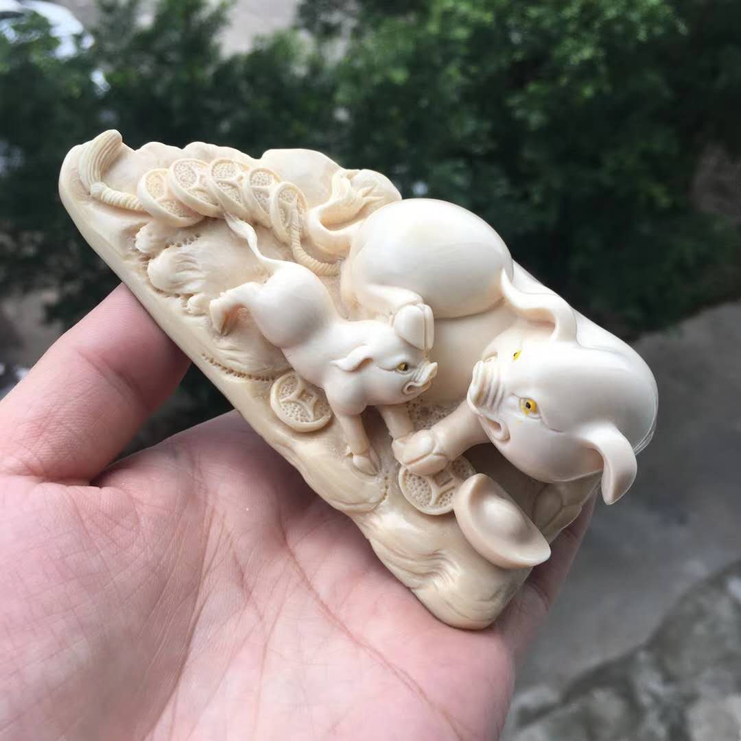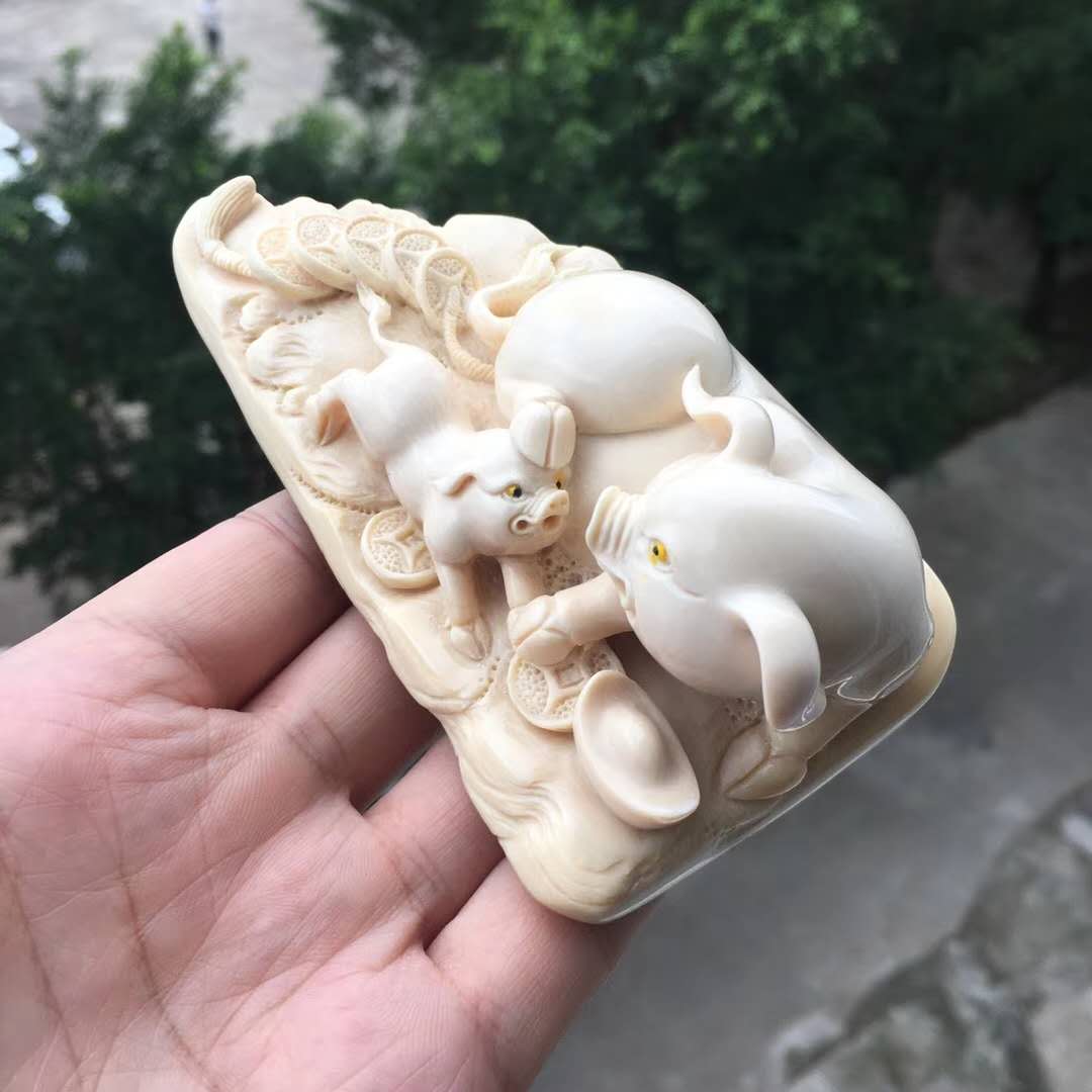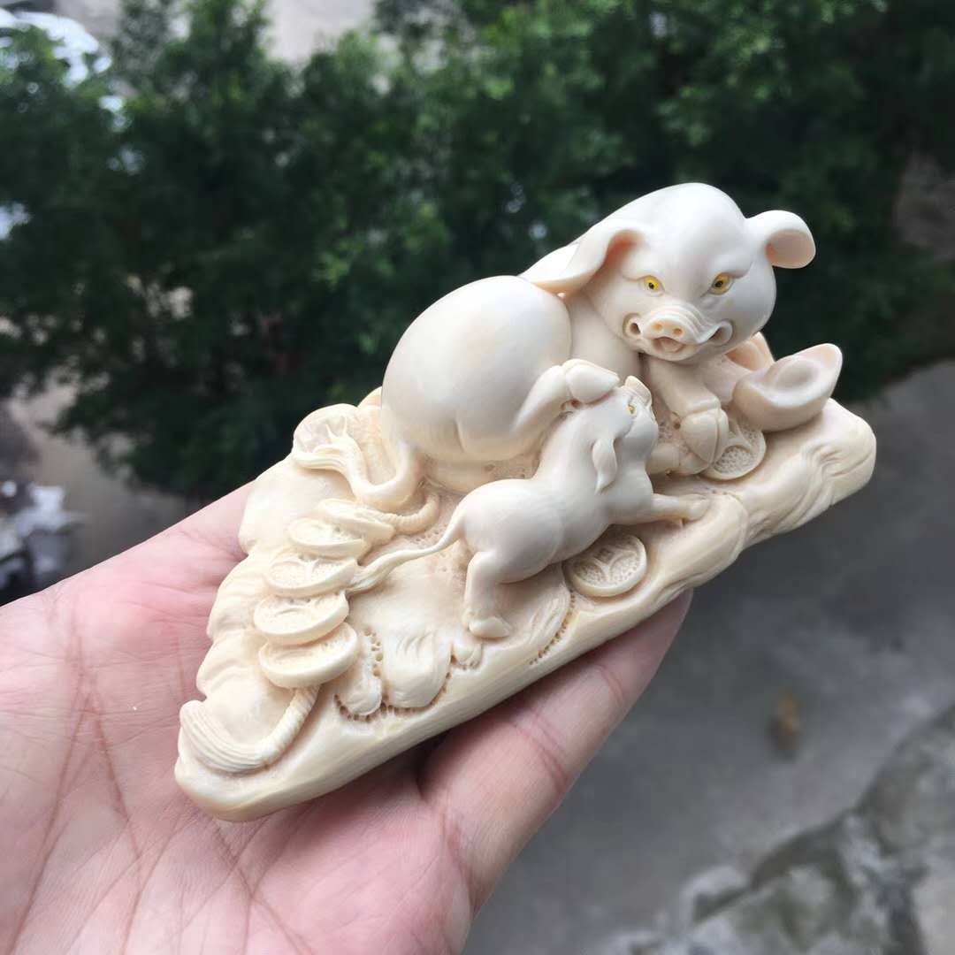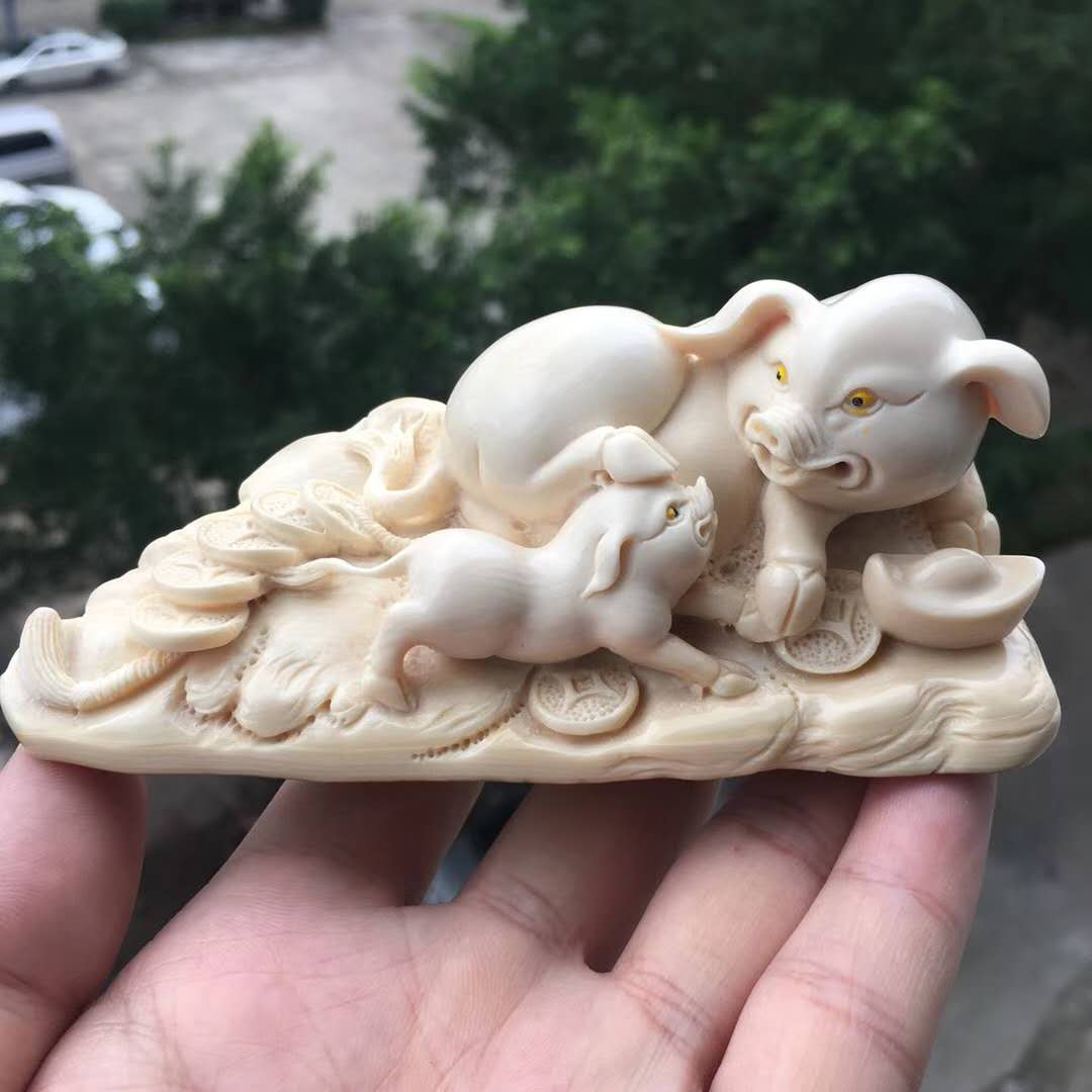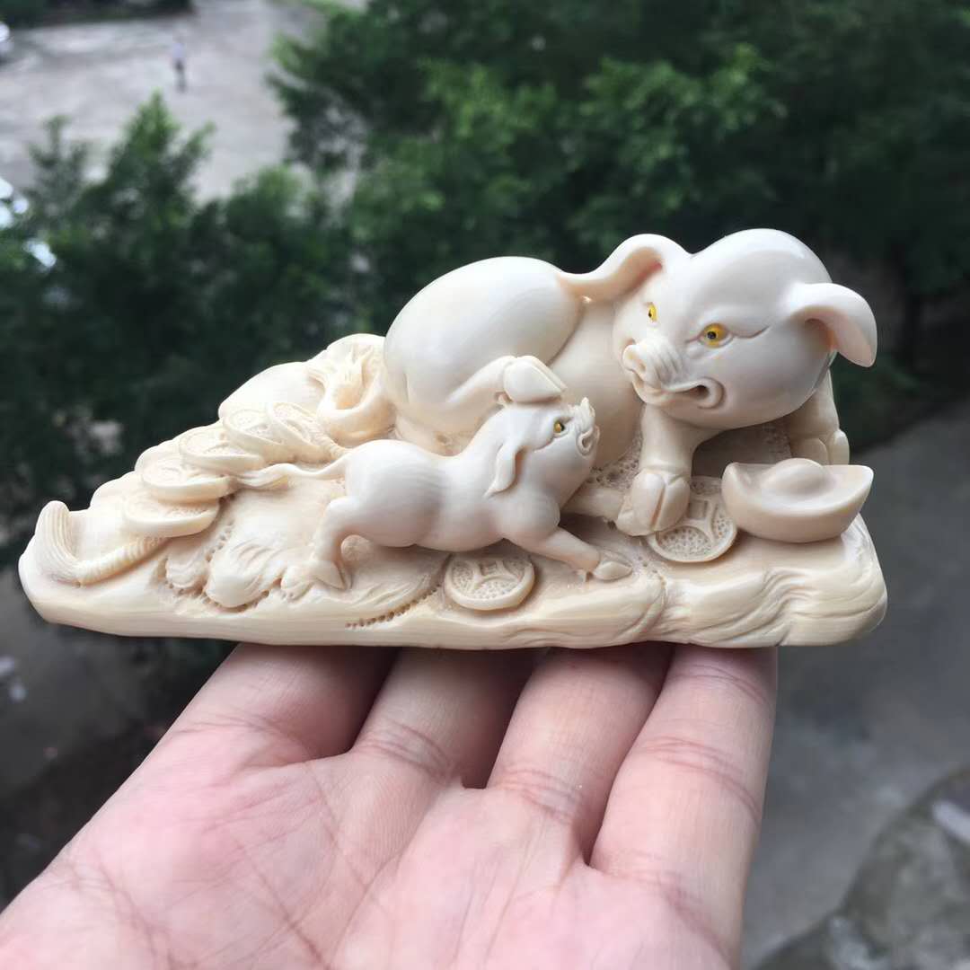 【送財福豬】小擺,純天然金皮冰料,牙質(zhì)溫潤細膩,形象生動,飽滿可愛,兩只小豬互相呼應,動態(tài)十足,福氣滿滿,送財?shù)郊摇?18*63*45mm,175克