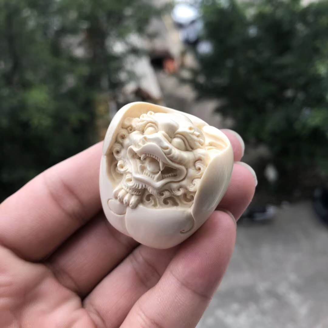 【事事如意】牙雕精品小件,圓潤精工設計造型,溫潤潔白如玉,招財辟邪,事事如意,完美品質,尺寸39*37*29mm重28.1g。