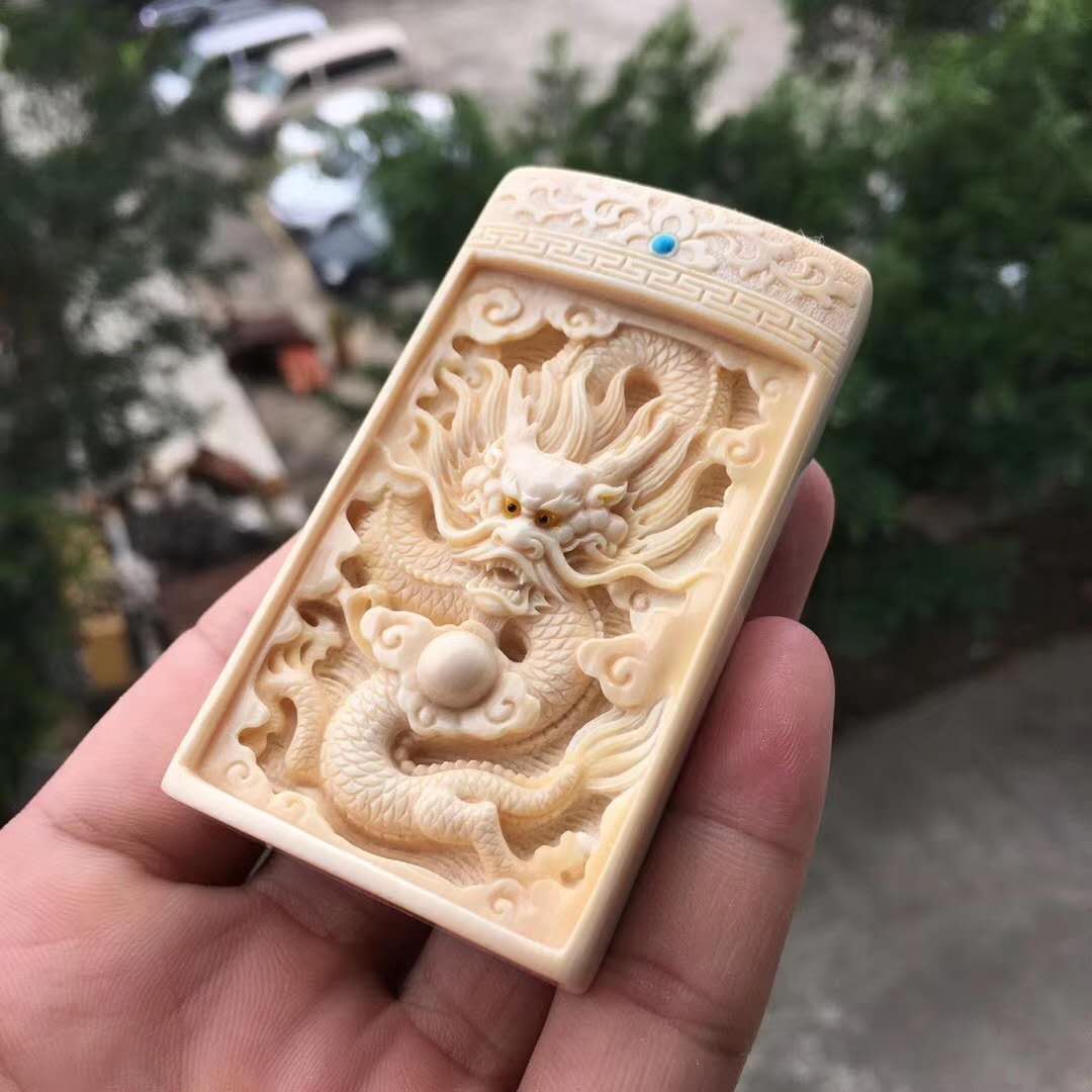 周凌勇老師作品【祥龍戲珠】背部天然猛犸牙皮,高端大氣