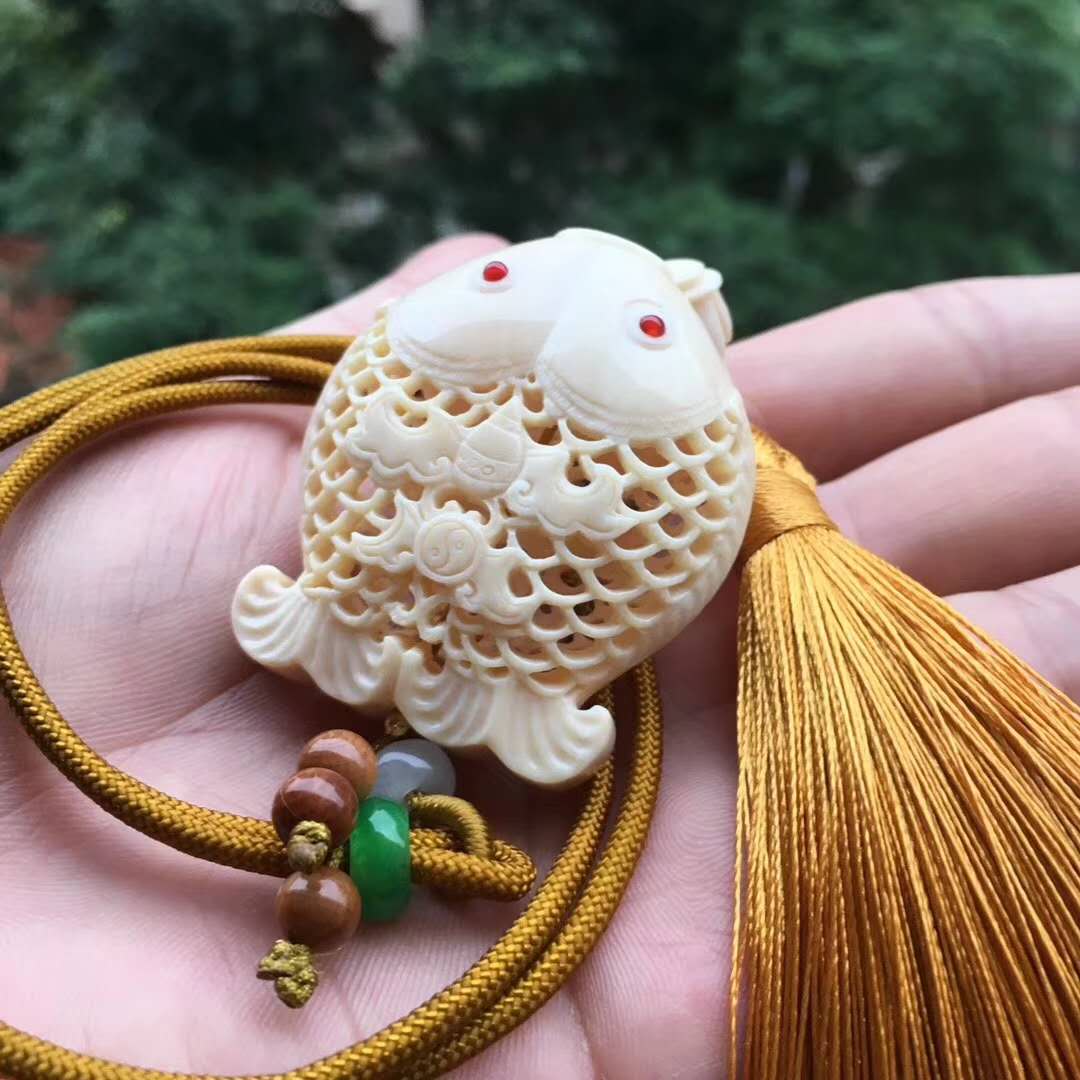全新升級,雙魚福臨門一體香囊掛件,純手作造型美觀實用,內壁掏空容量超大。四周為網格式設計虛實結合,大氣簡約。整體色澤均勻,溫潤而細膩。40×56×18mm,約10g