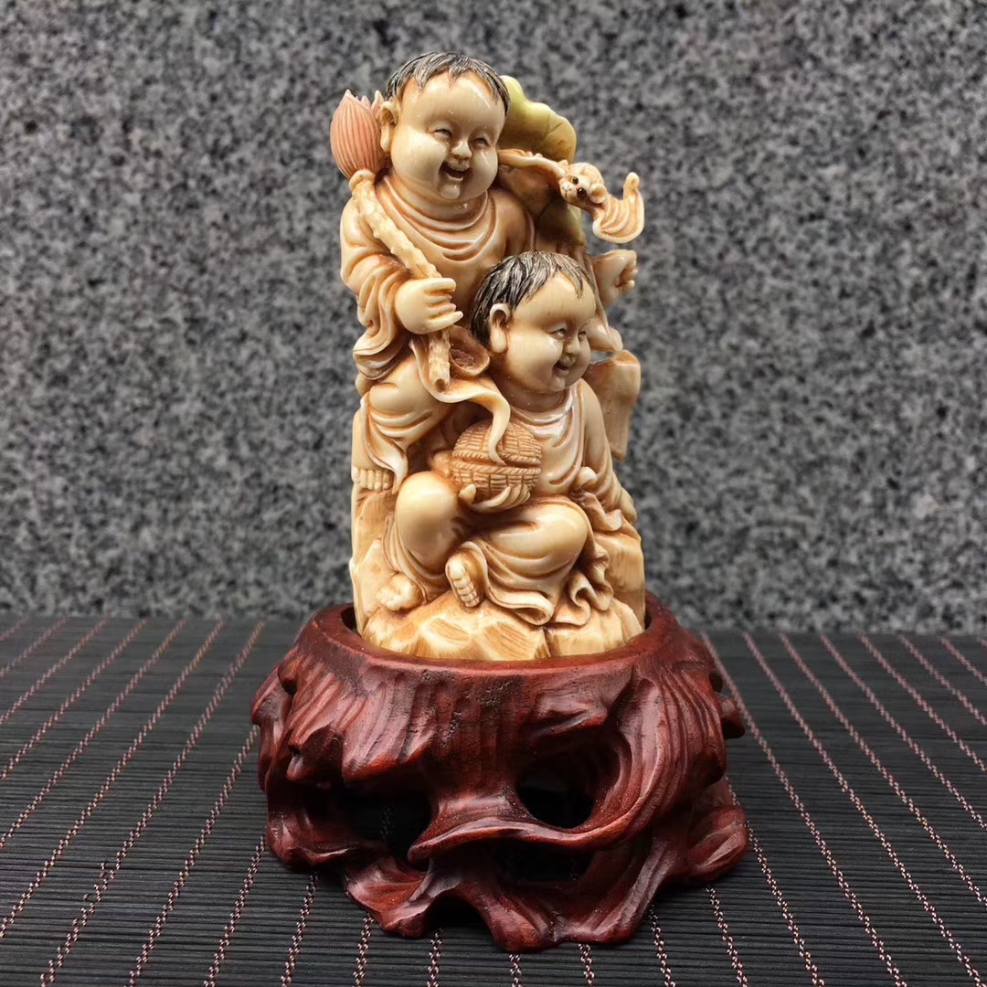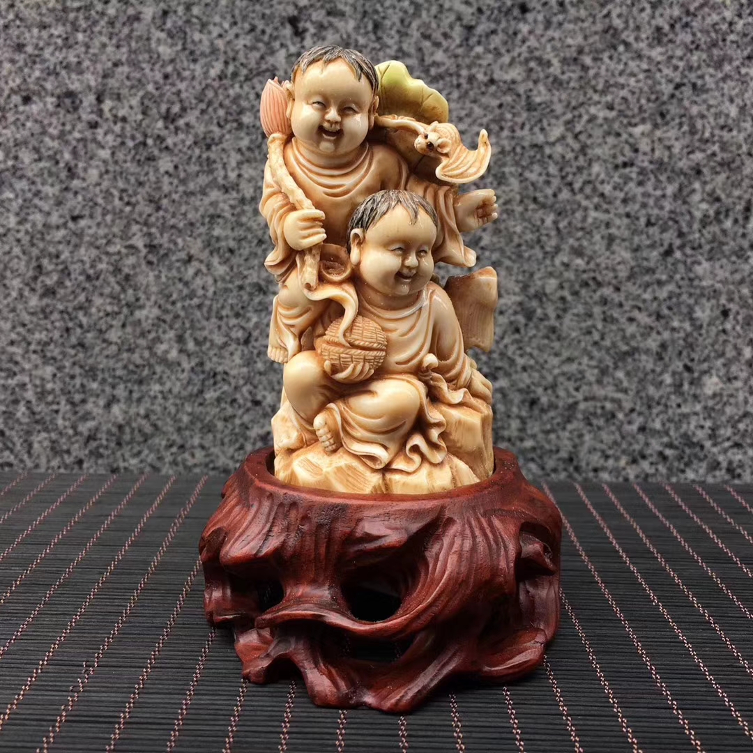 【貴子大師作品】精工回流【和合二仙】,原創設計款,精選猛犸冰料,牙質水潤,精美浮雕,雕工流暢如水,細節無可挑剔!