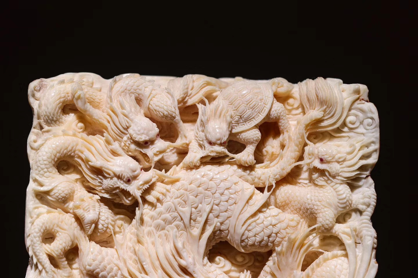 館藏級(jí)!猛犸牙雕【九龍獻(xiàn)瑞】非遺大師耗時(shí)3月精工創(chuàng)作龍之九子