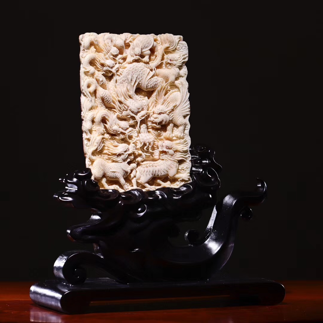 館藏級(jí)!猛犸牙雕【九龍獻(xiàn)瑞】非遺大師耗時(shí)3月精工創(chuàng)作龍之九子:囚牛、睚眥、嘲風(fēng)、蒲牢、狻猊、赑屃、狴犴、負(fù)屃、螭吻。神態(tài)傳神,層次分明,活靈活現(xiàn),不可多得!結(jié)緣配底座禮盒!