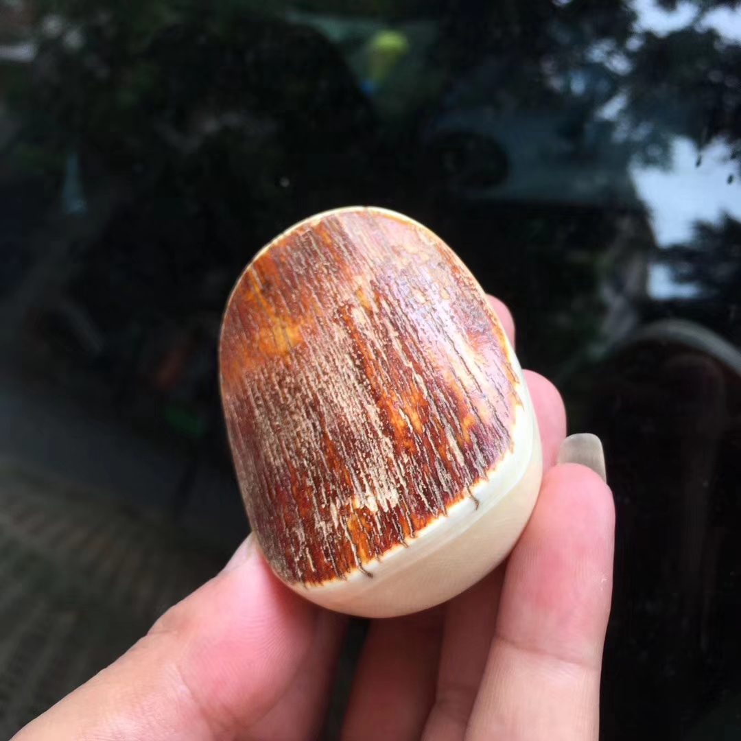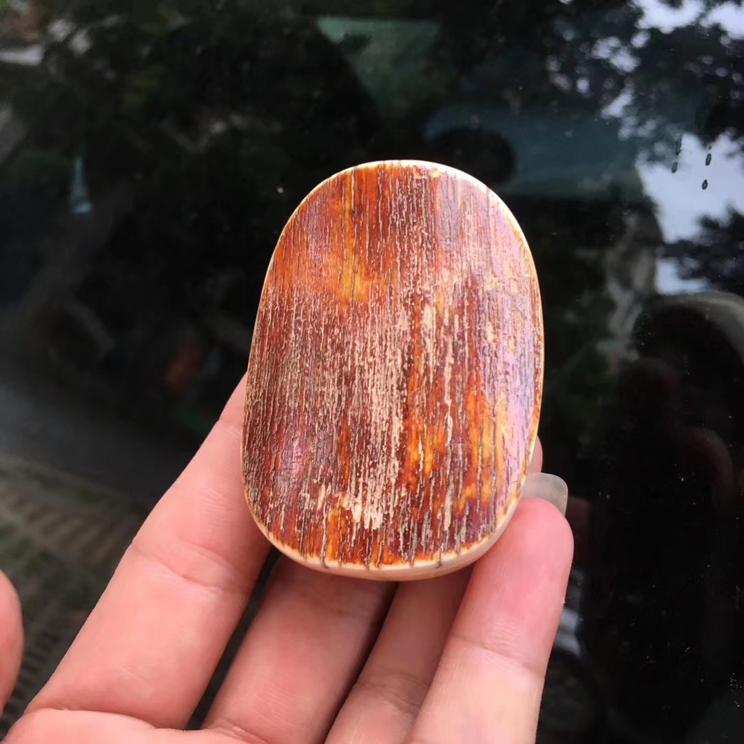 猛犸牙雕作品元寶彌勒佛掛牌,大師意境之作。大肚彌勒面容祥和,保留天然錦紅原皮, 純手工收藏。45×63×22mm,58.3g