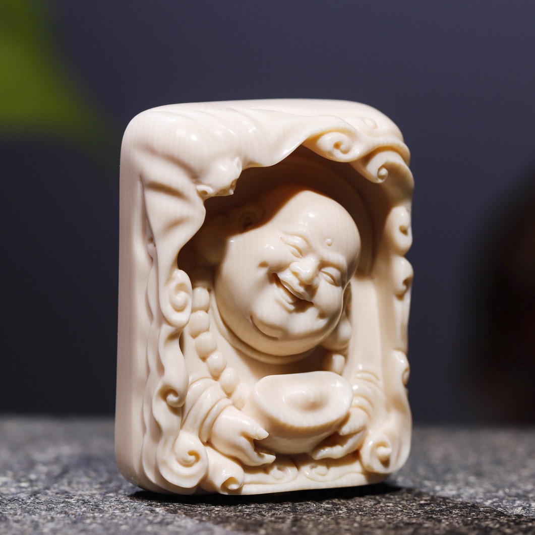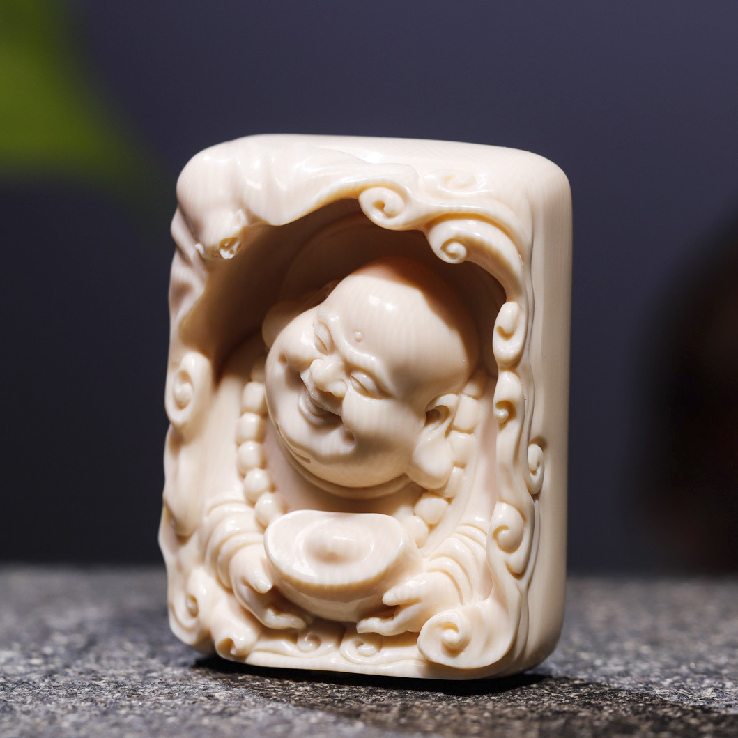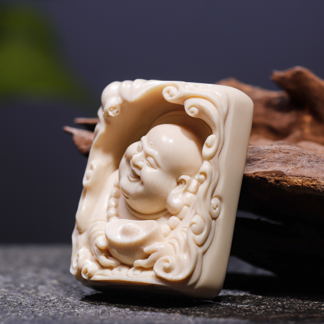 【元寶彌勒·福在眼前】悟仰堂志東大師手雕猛犸牙精品