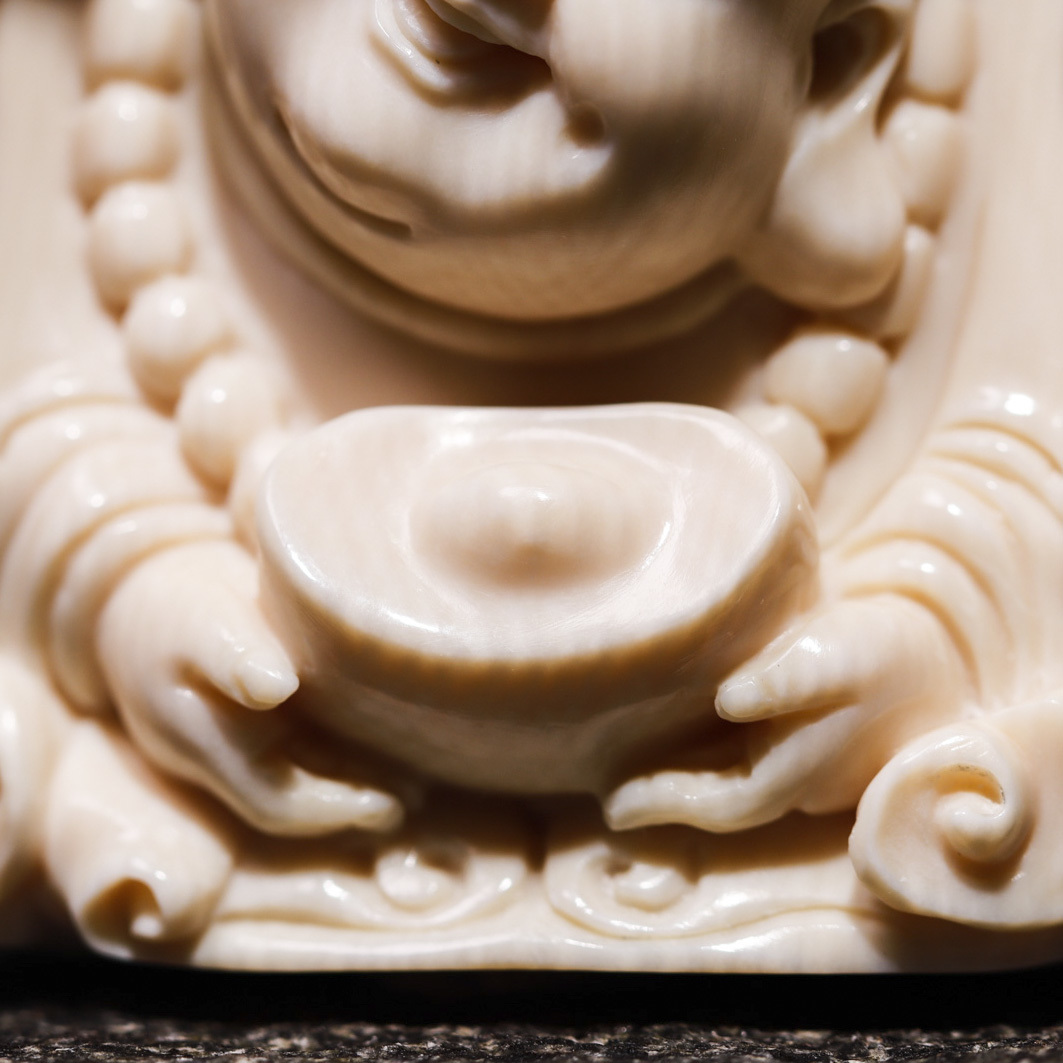 象牙紋路清晰飽滿,料子非常潤,造型大氣,細節精美傳神,護佑佩戴者開開心心,福氣滿滿,事業有成,萬事如意,財源廣進。