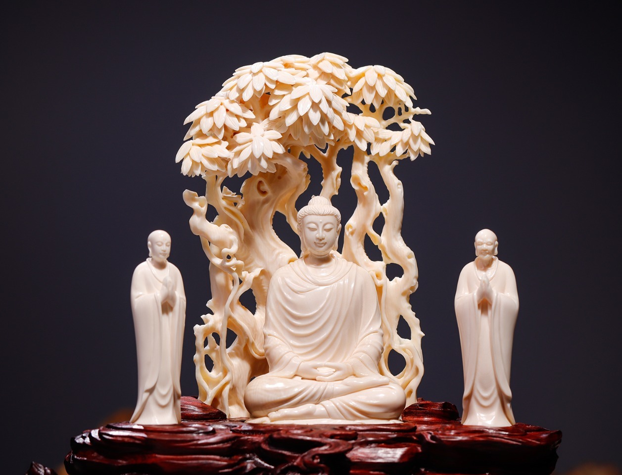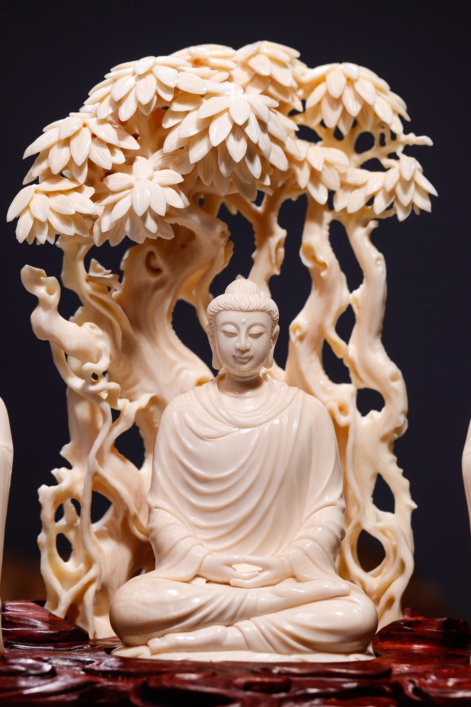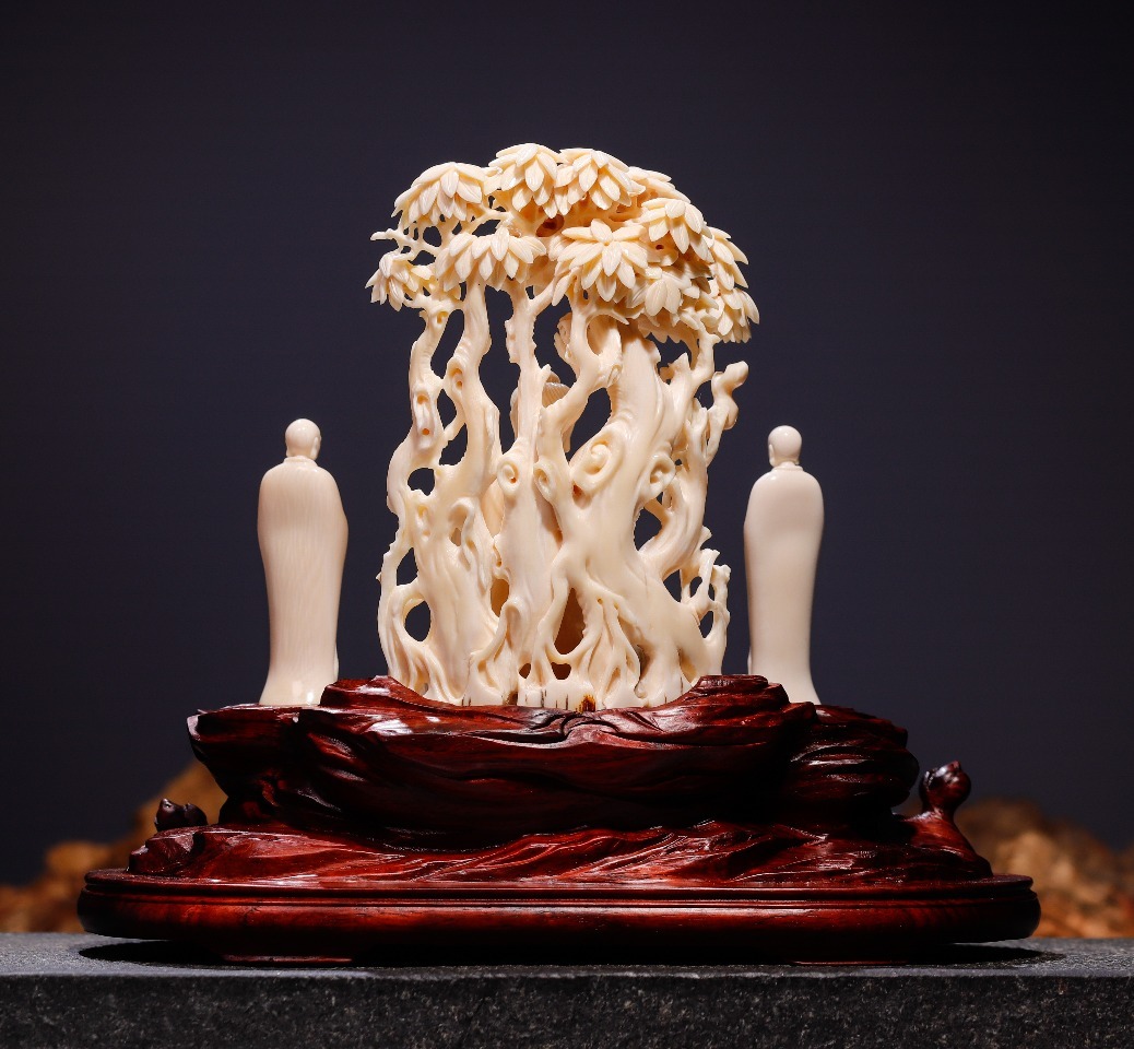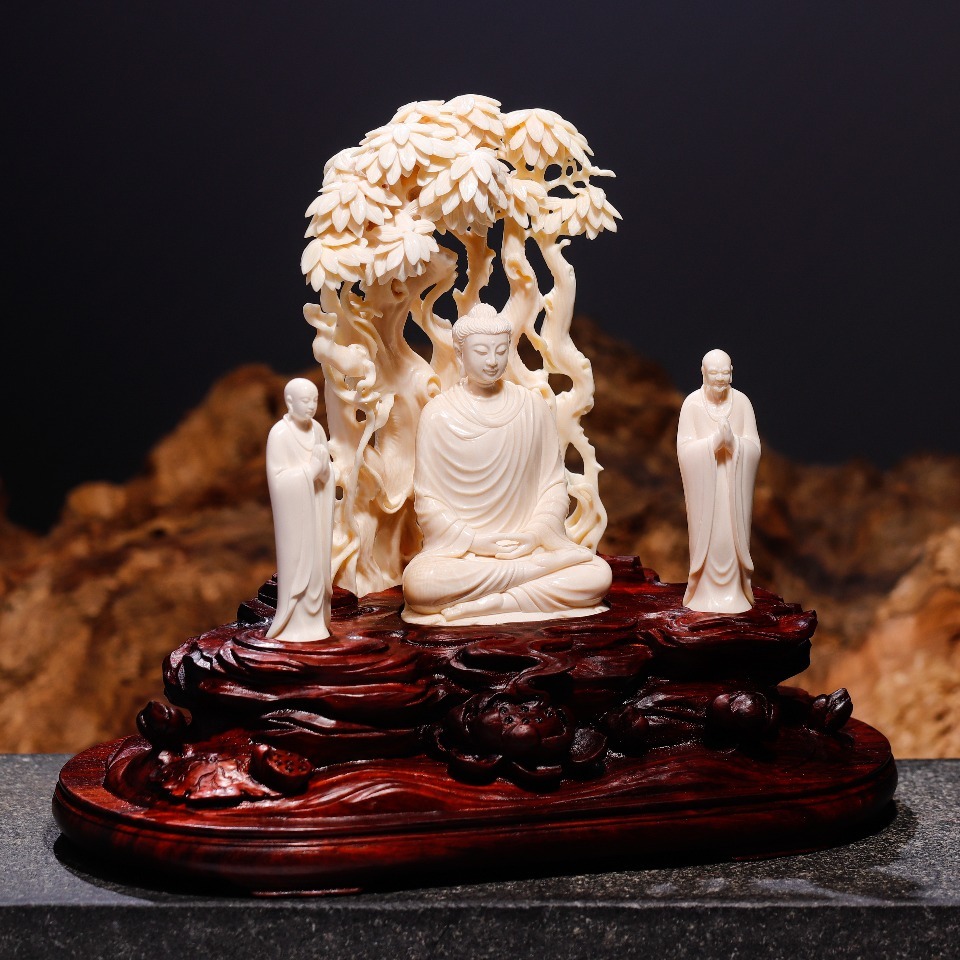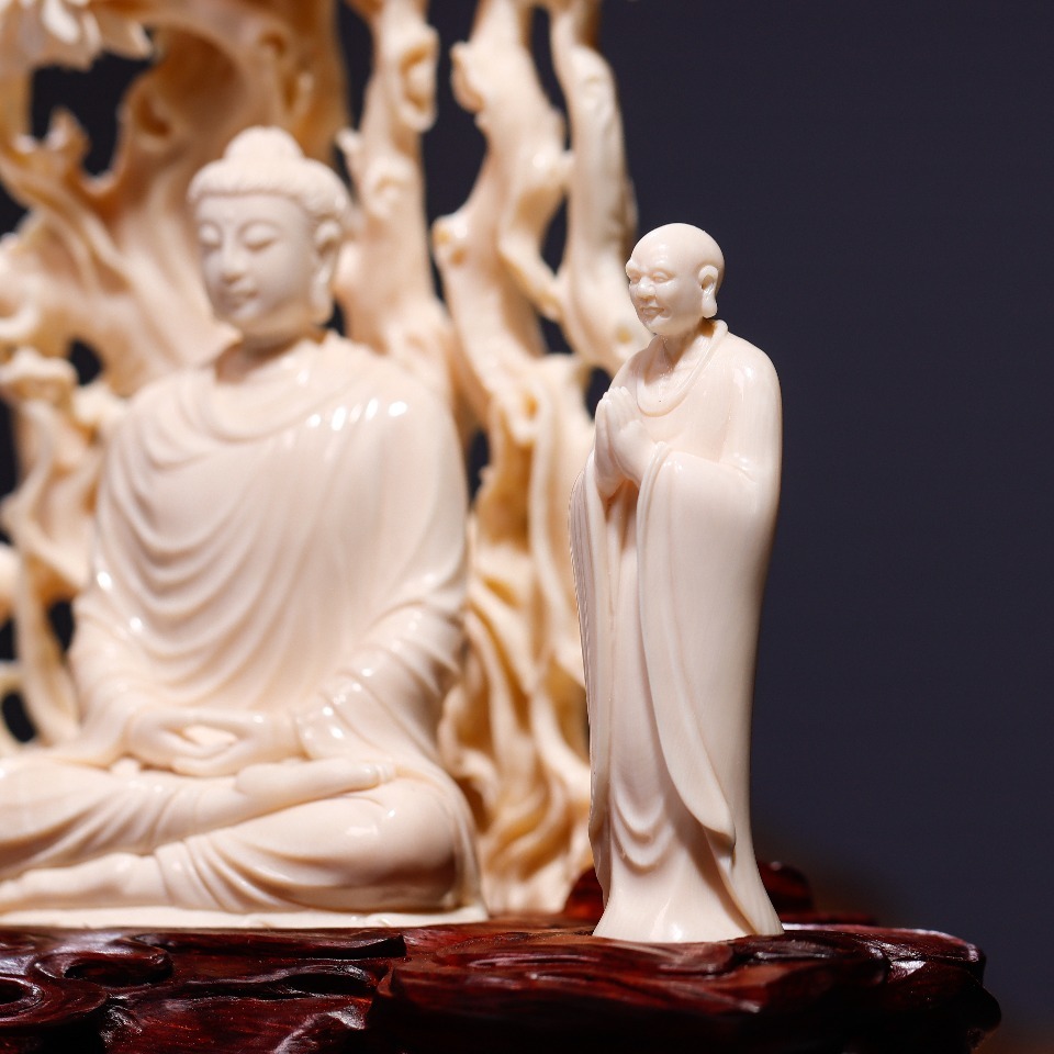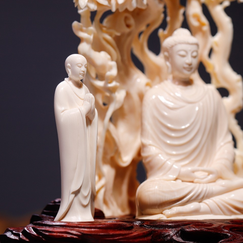 精選頂級(jí)猛犸牙冰料,手工立體精雕細(xì)琢,采用鏤空手法,細(xì)節(jié)精美細(xì)膩,作品意境深遠(yuǎn),配印度小葉紫檀手雕底座,意境深遠(yuǎn),禪意十足,可謂收藏級(jí)精品。