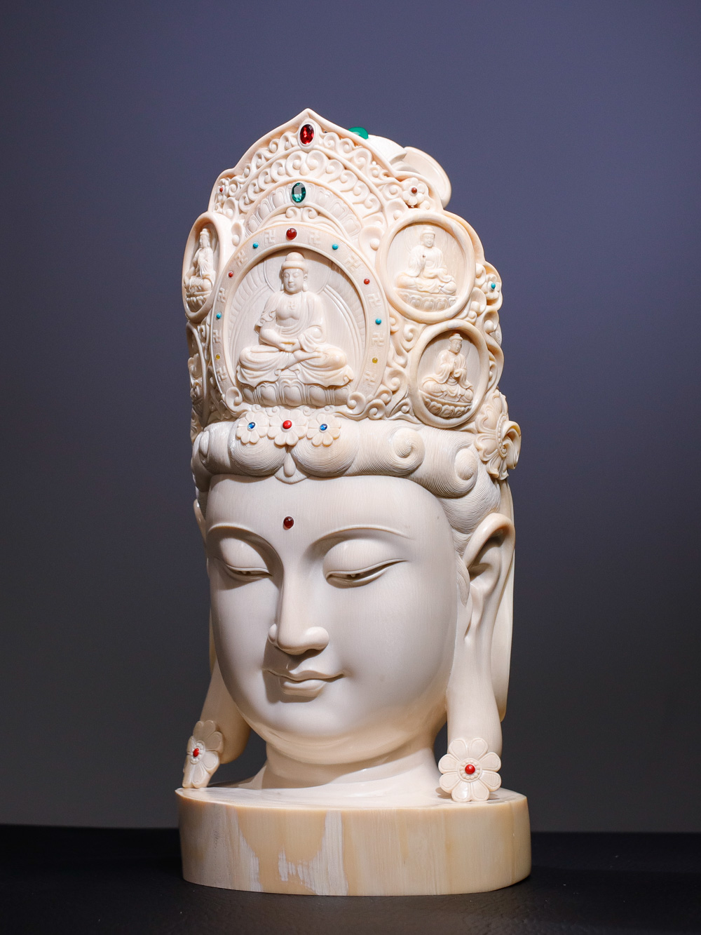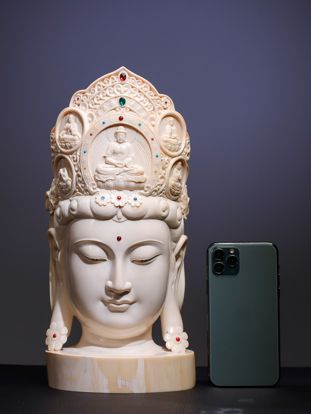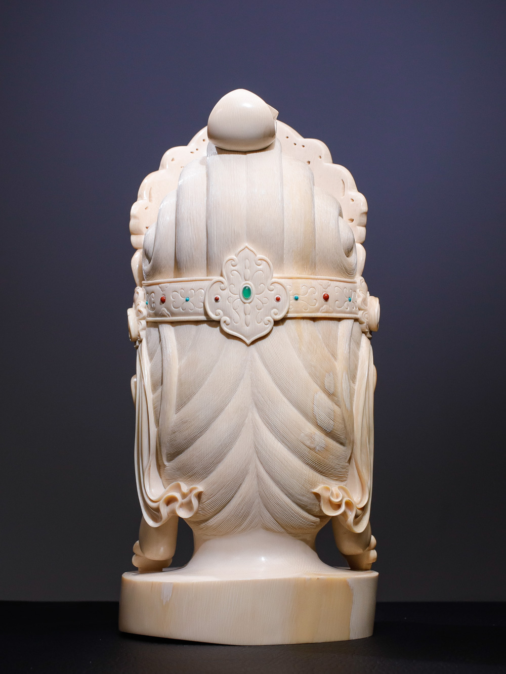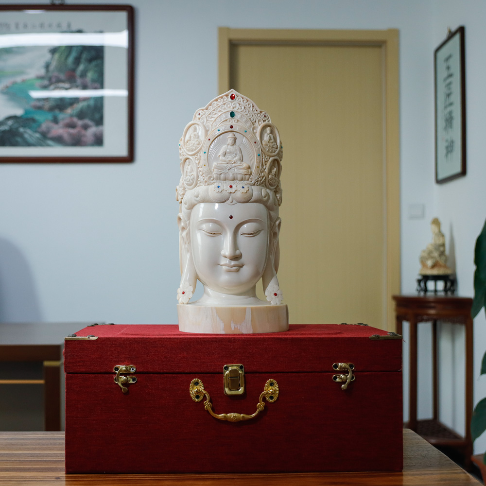 重器《觀音像》猛犸牙原牙擺件,海山大師耗時(shí)數(shù)月精雕力作