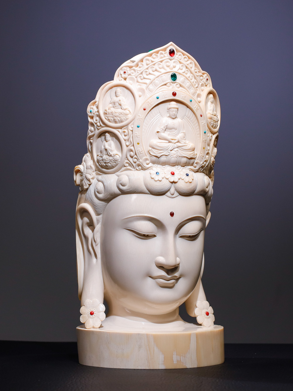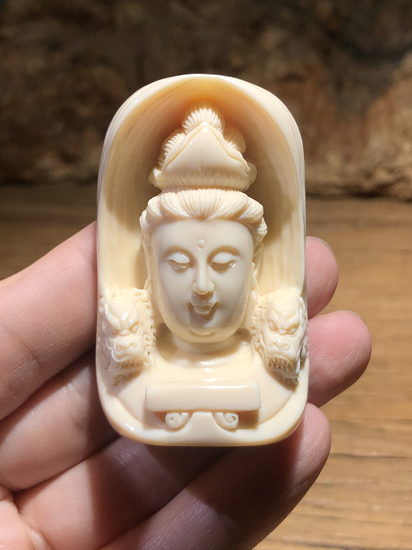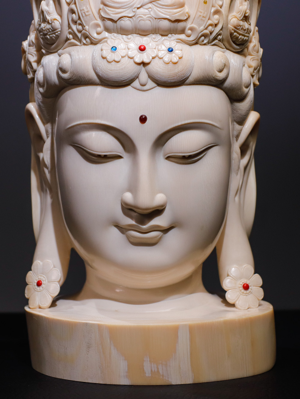 重器《觀音像》猛犸牙原牙擺件,海山大師耗時(shí)數(shù)月精雕力作