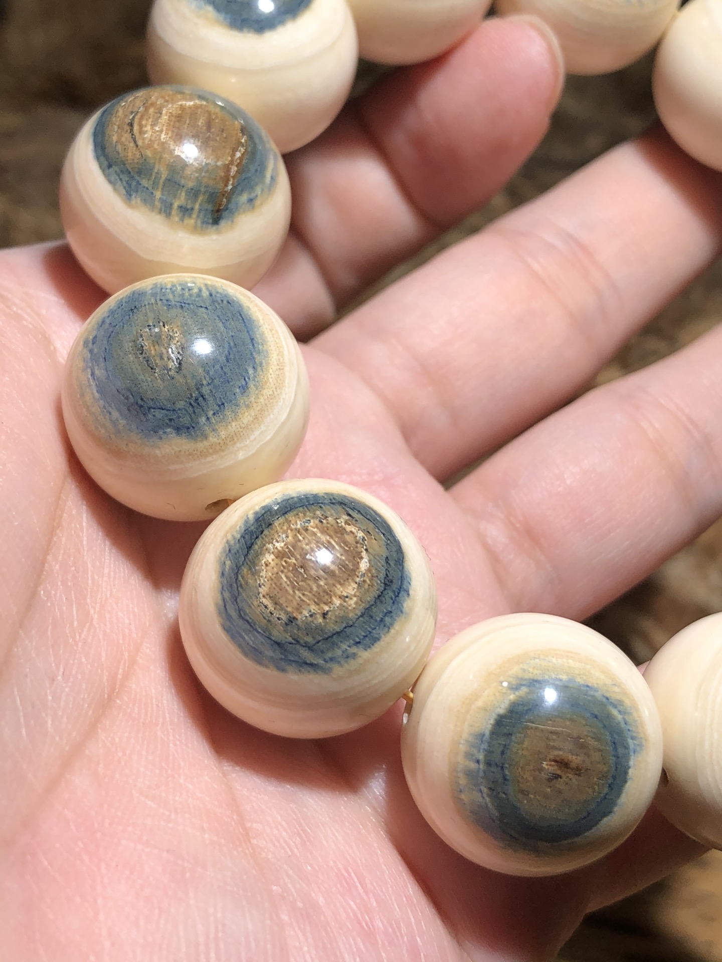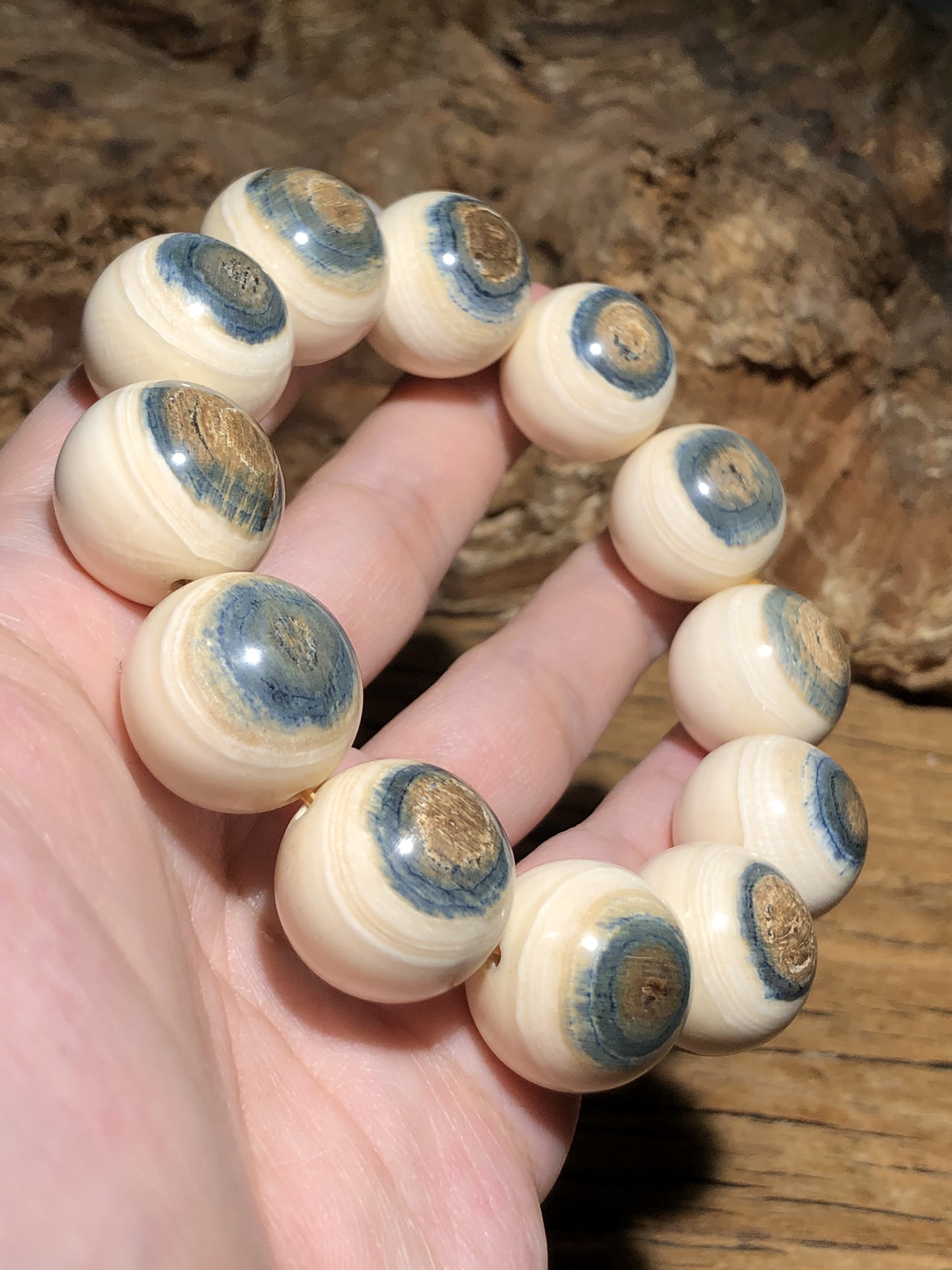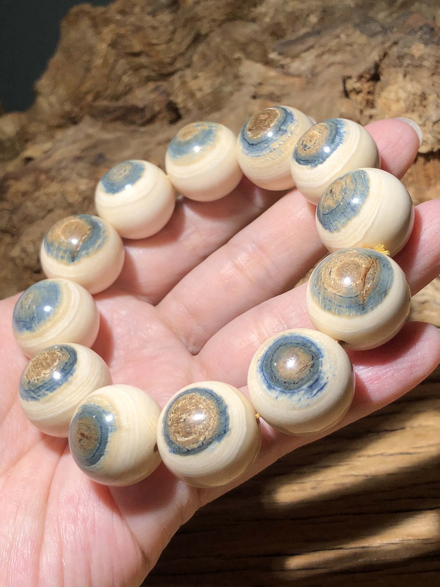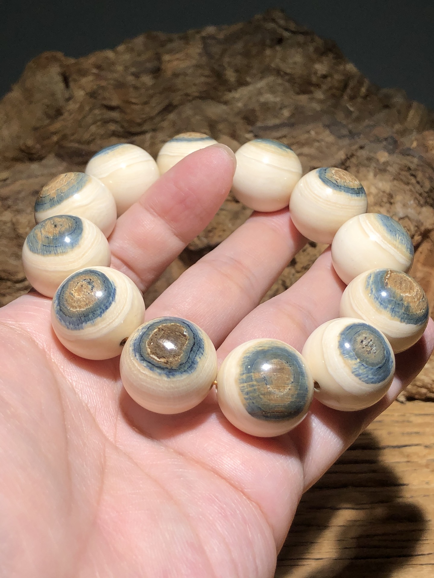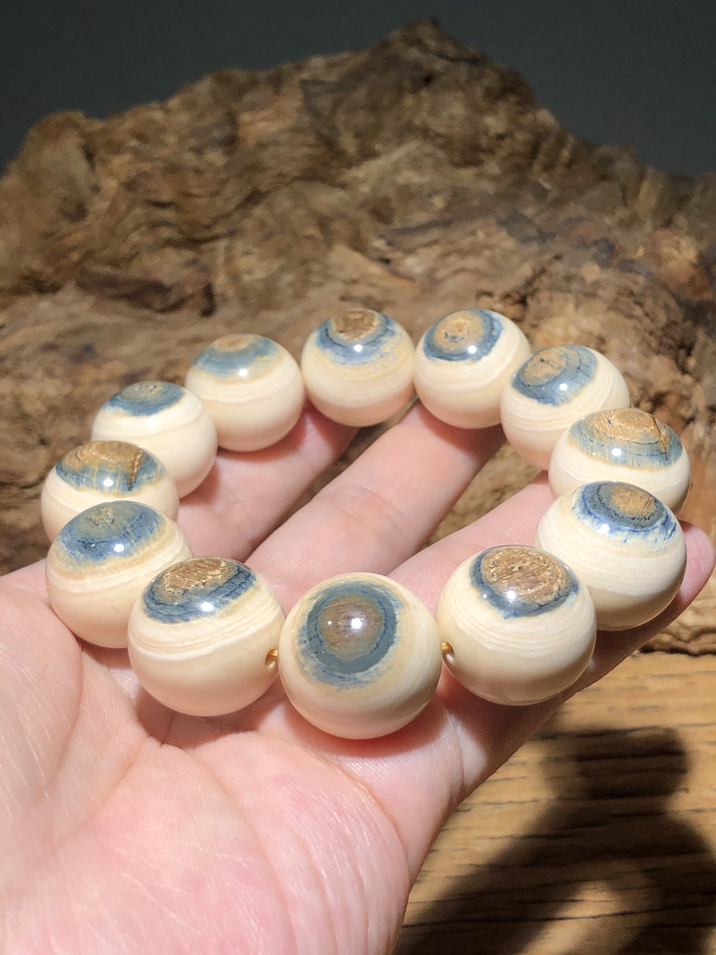 《藍(lán)眼手串》20MM極品天然頂級(jí)猛犸牙藍(lán)眼睛,藍(lán)白分明!大自然的孕育