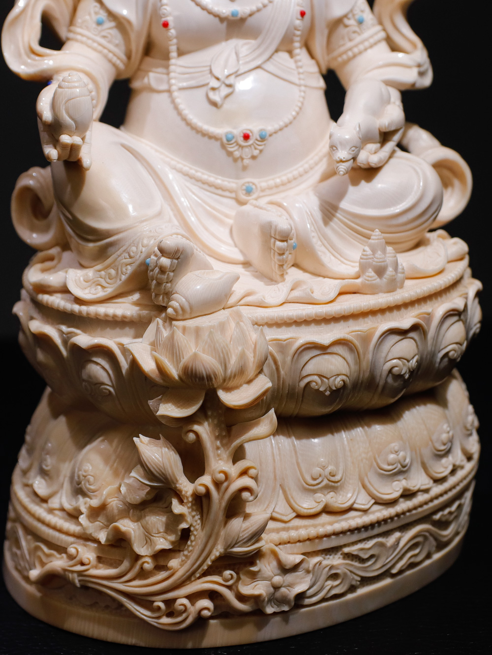 《財寶天王》賞擺,極品猛犸牙雕冰料黃財神擺件