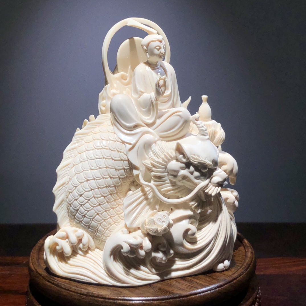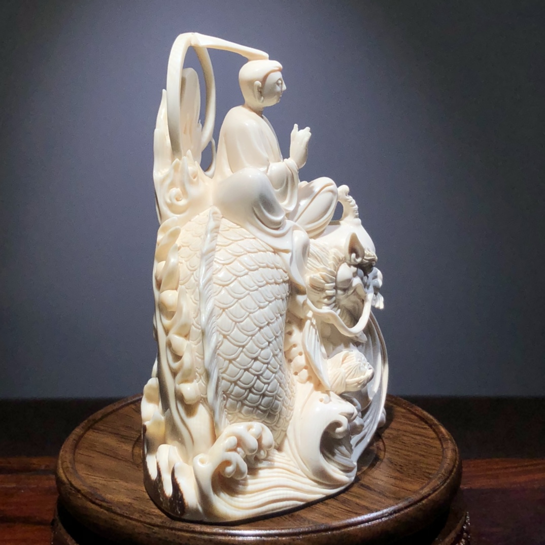 《鰲魚觀音》擺件,云飛老師手雕孤品!